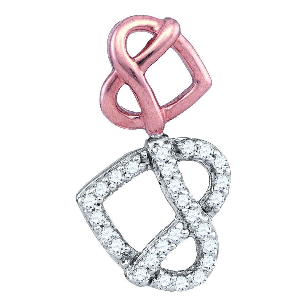10kt Two-tone Gold Womens Round Diamond Double Heart Pretzel Pendant 1/6 Cttw