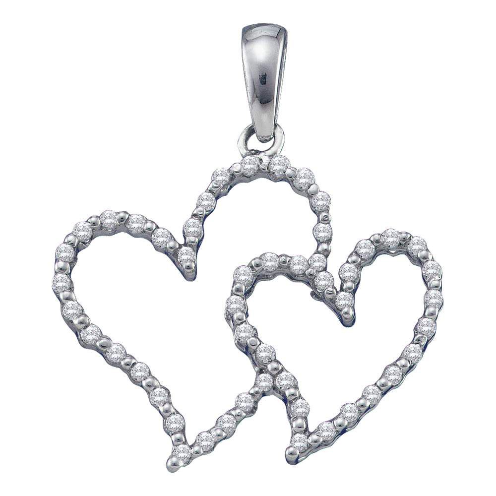 10kt White Gold Womens Round Diamond Double Heart Outline Pendant 1/5 Cttw