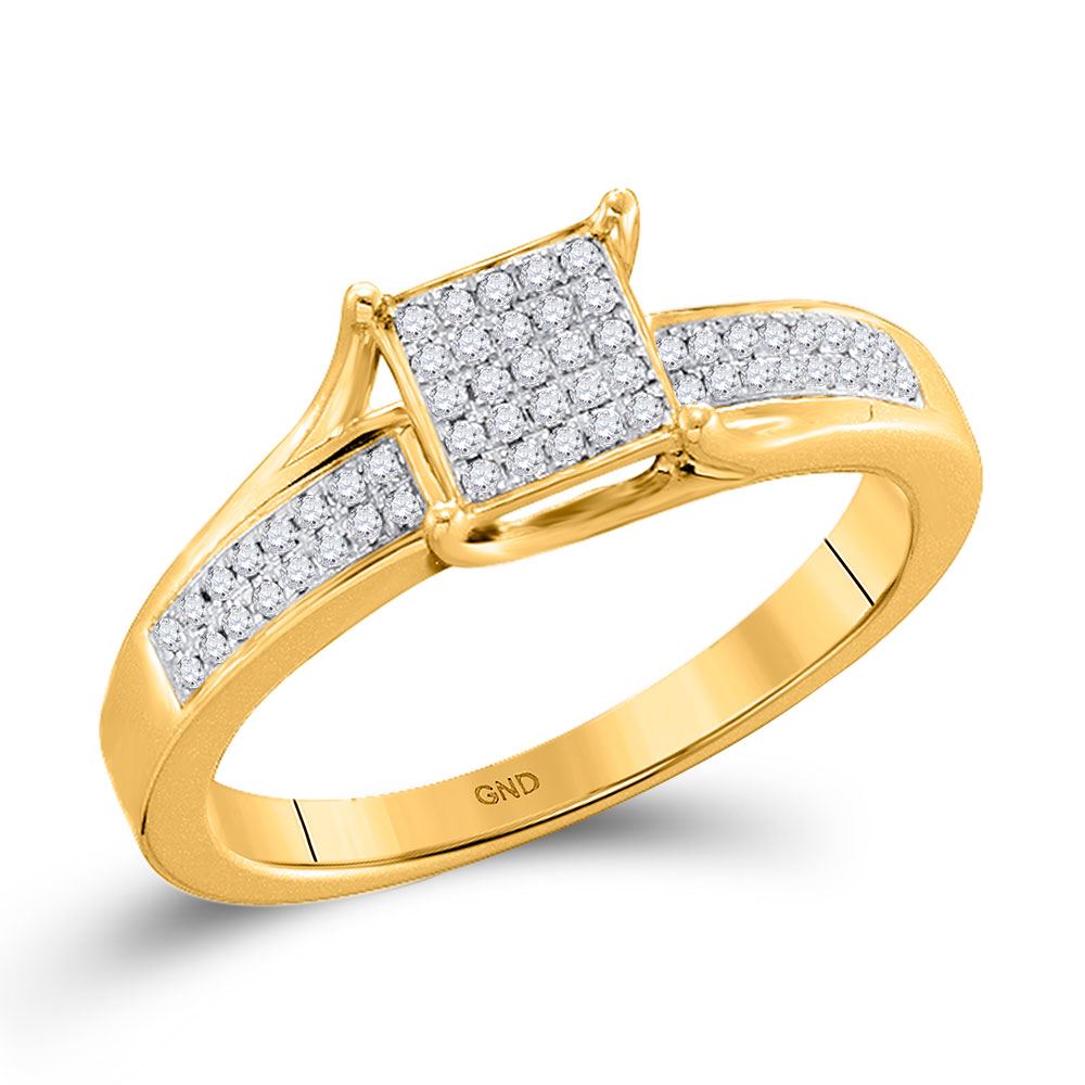 10kt Yellow Gold Womens Round Diamond Elevated Square Cluster Ring 1/6 Cttw