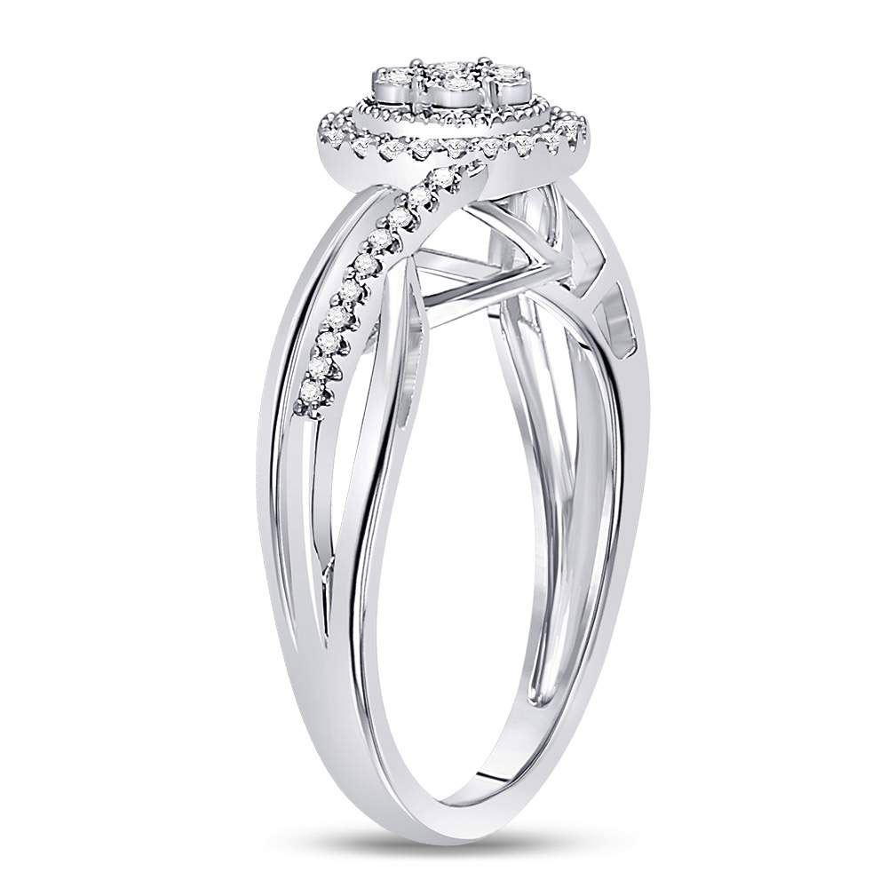 10kt White Gold Womens Round Diamond Flower Cluster Ring 1/6 Cttw