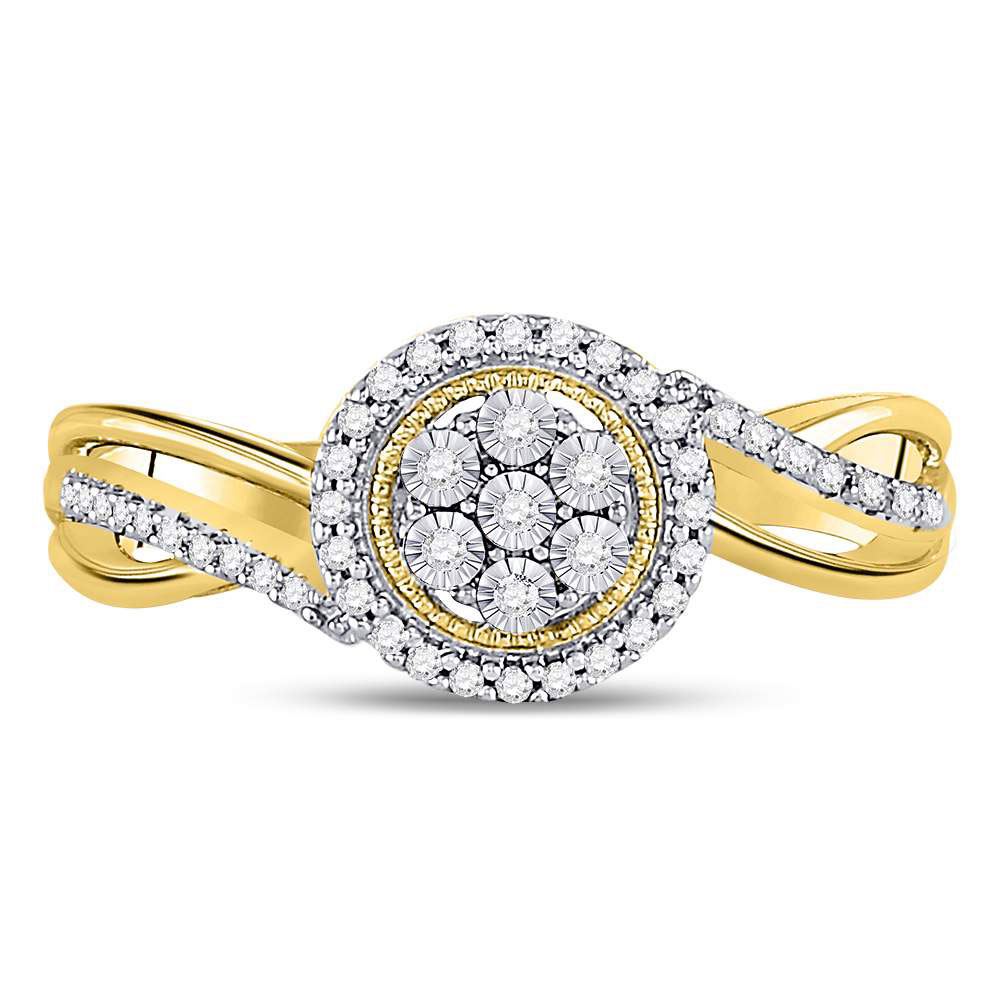 10kt Yellow Gold Womens Round Diamond Flower Cluster Ring 1/6 Cttw