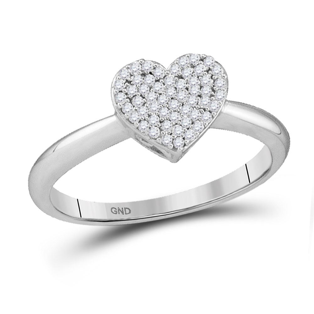 10kt White Gold Womens Round Diamond Heart Fashion Ring 1/6 Cttw