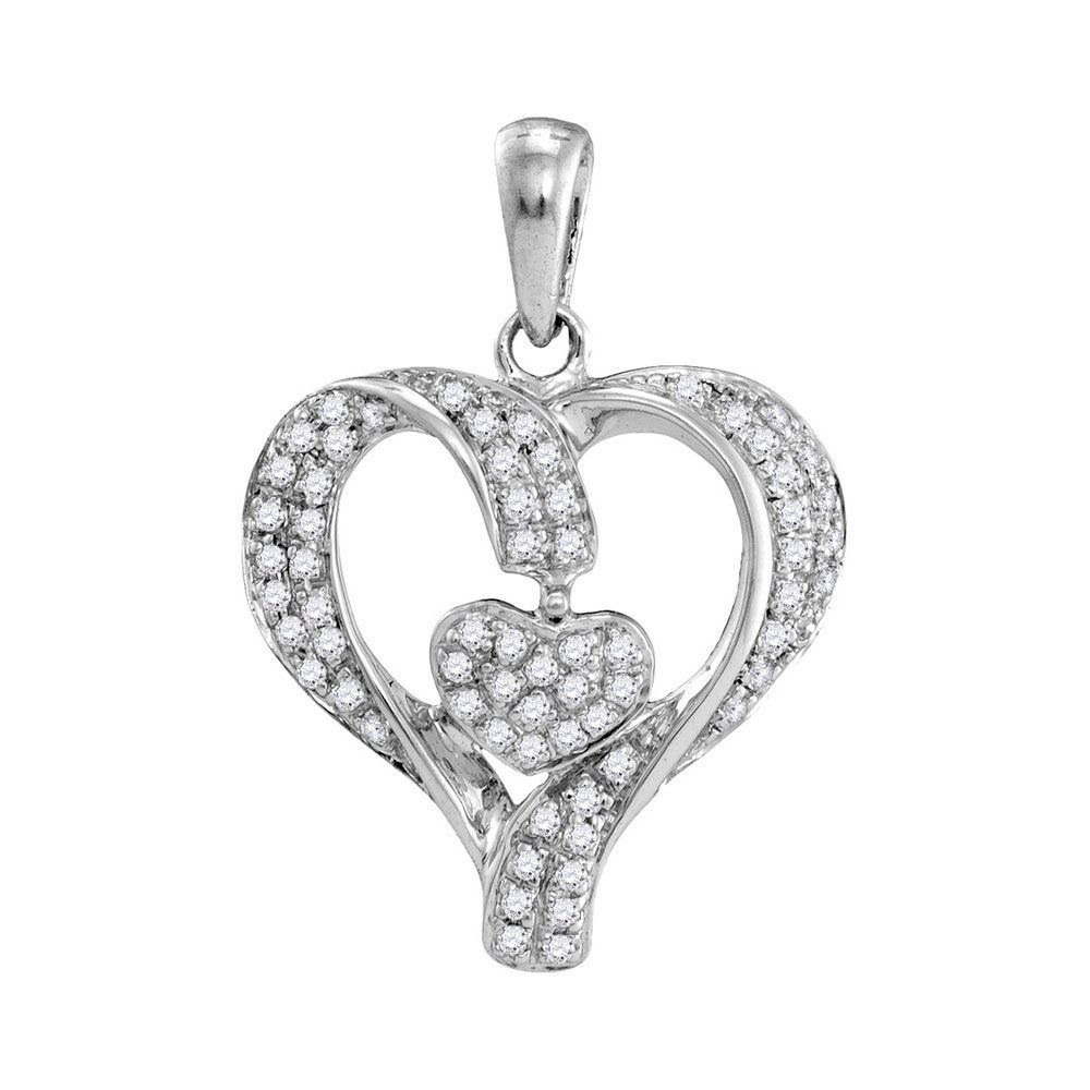 10kt White Gold Womens Round Diamond Heart Pendant 1/6 Cttw