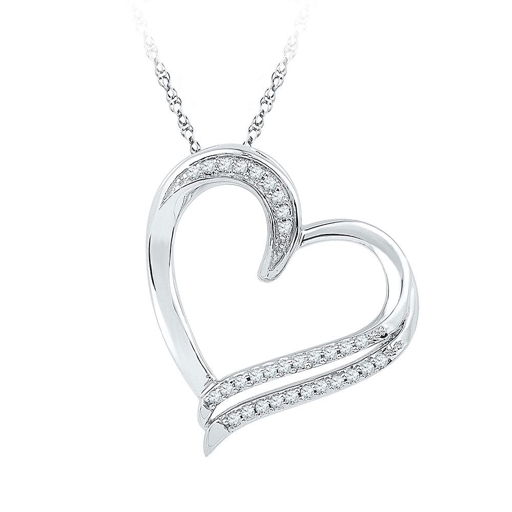 10kt White Gold Womens Round Diamond Heart Pendant 1/6 Cttw