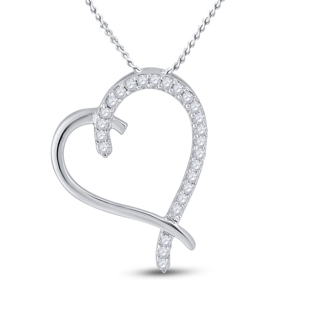 10kt White Gold Womens Round Diamond Segmented Heart Outline Pendant 1/6 Cttw