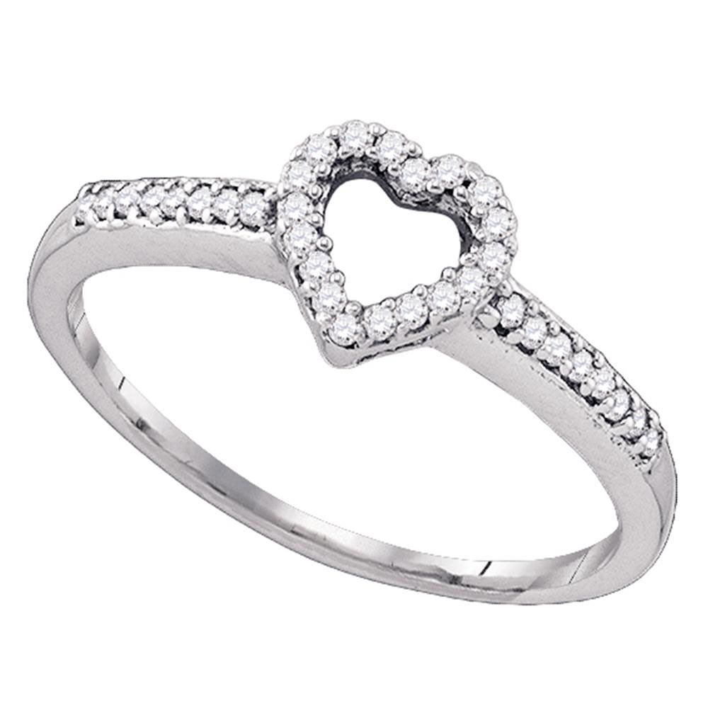 10kt White Gold Womens Round Diamond Heart Ring 1/8 Cttw