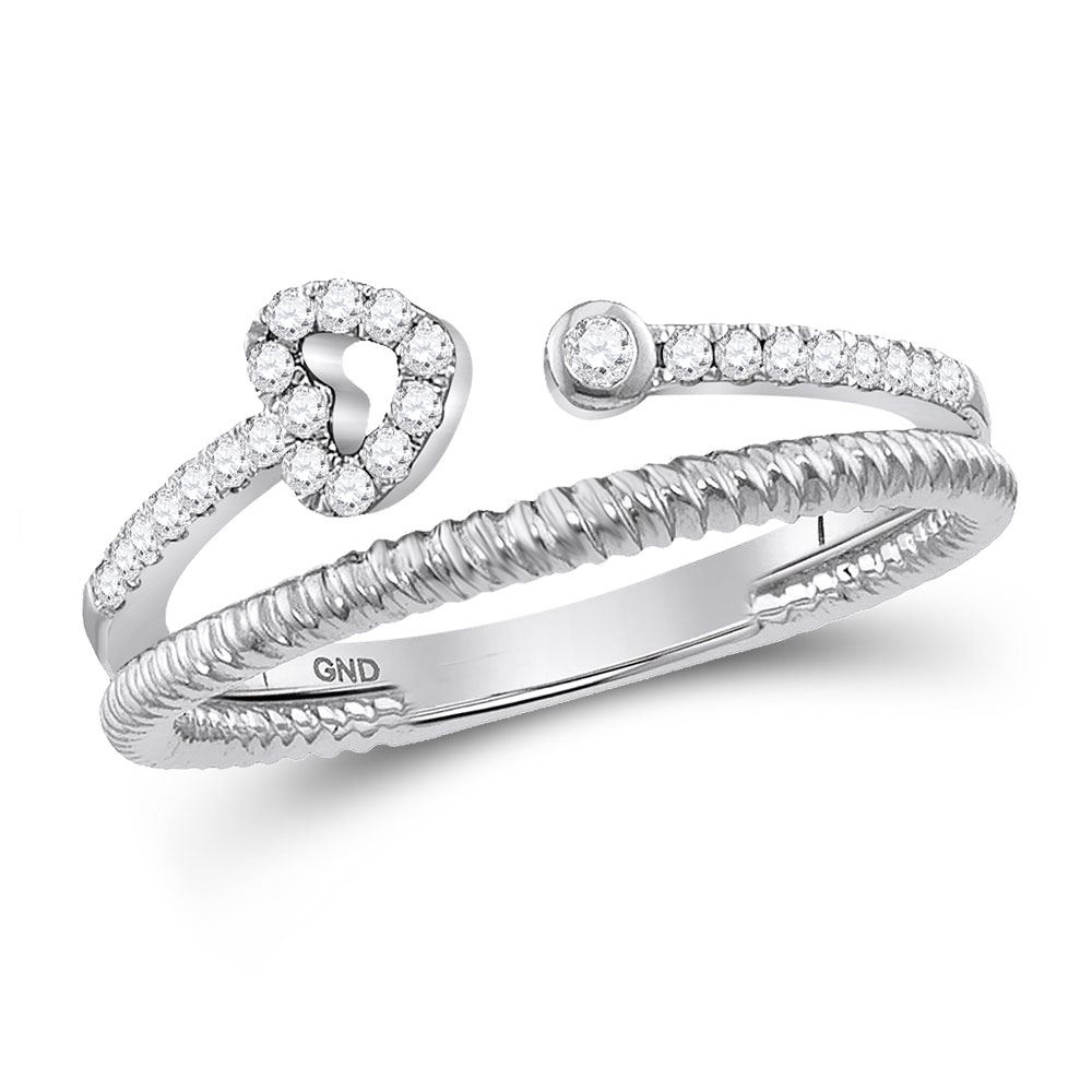 10kt White Gold Womens Round Diamond Opened Heart Stackable Band Ring 1/5 Cttw