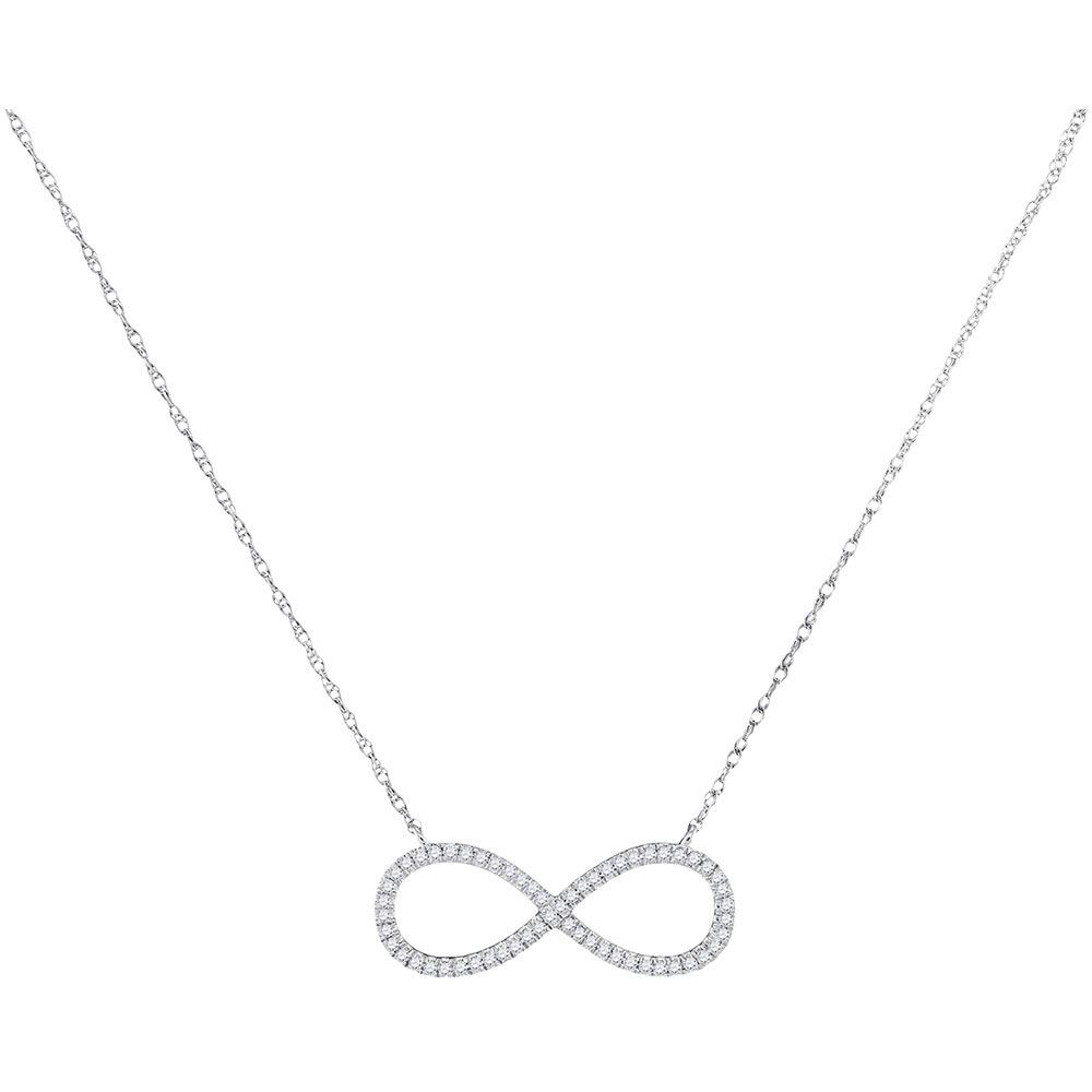 10kt White Gold Womens Round Diamond Infinity Pendant Necklace 1/6 Cttw
