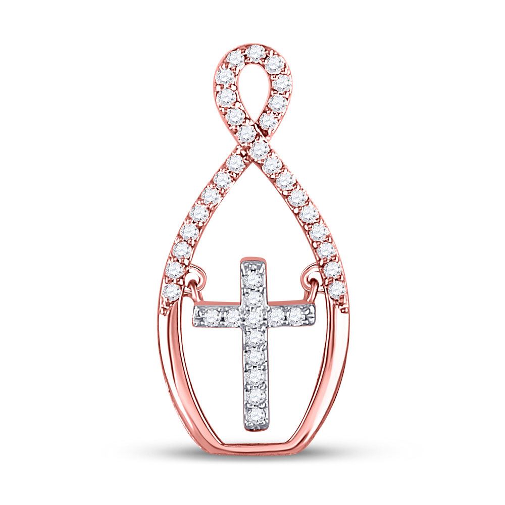 REF-14K4R ---- 1/6 CTW Round Diamond Moving Twinkle Cross Faith Pendant 10kt Two-tone Gold