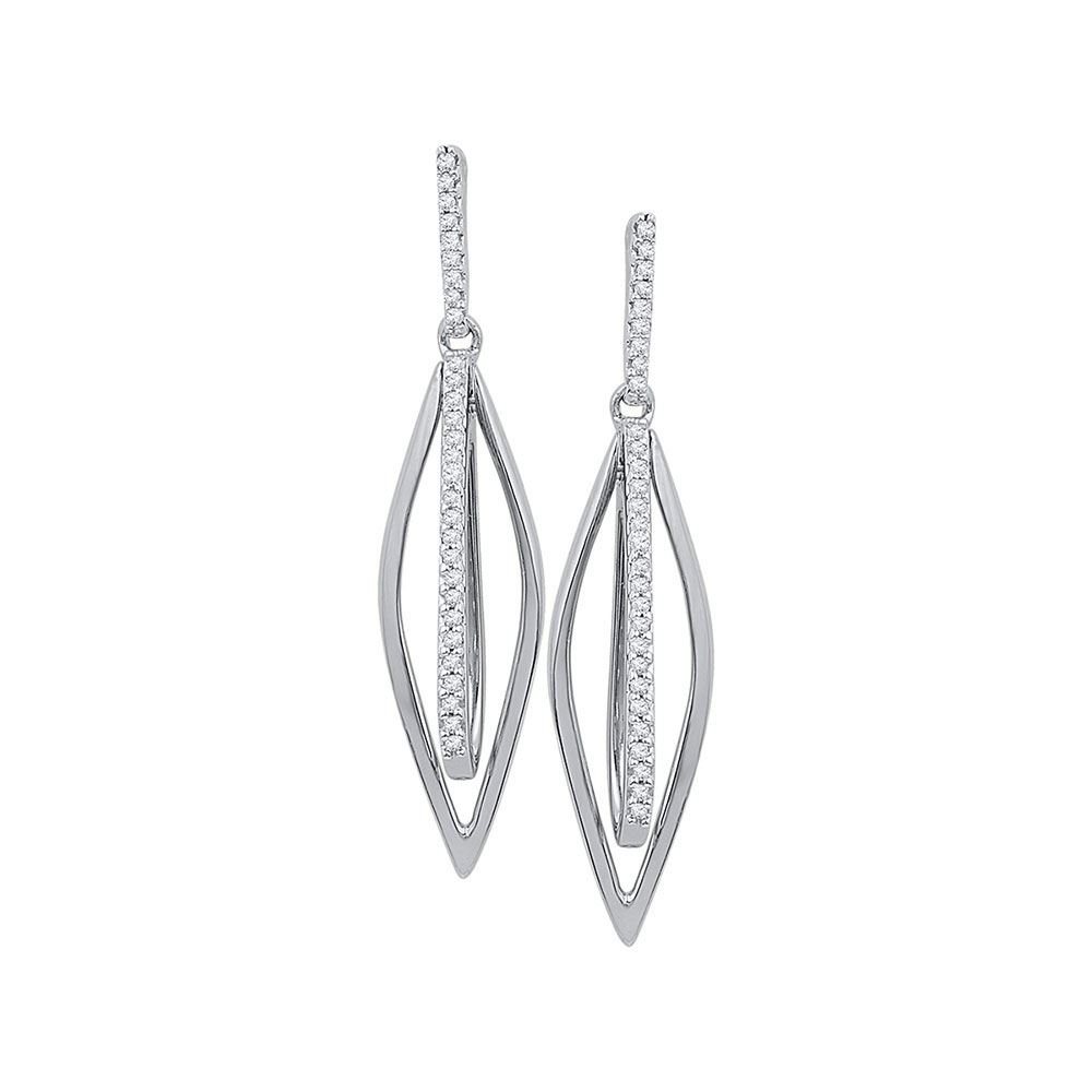 REF-22A8N ---- 1/6 CTW Round Diamond Oblong Oval Dangle Earrings 10kt White Gold