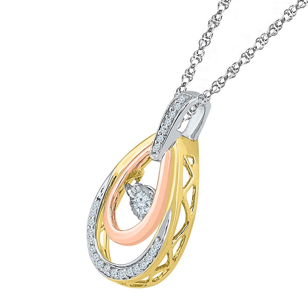 10kt Tri-Tone Gold Womens Round Diamond Oval Moving Twinkle Pendant 1/6 Cttw