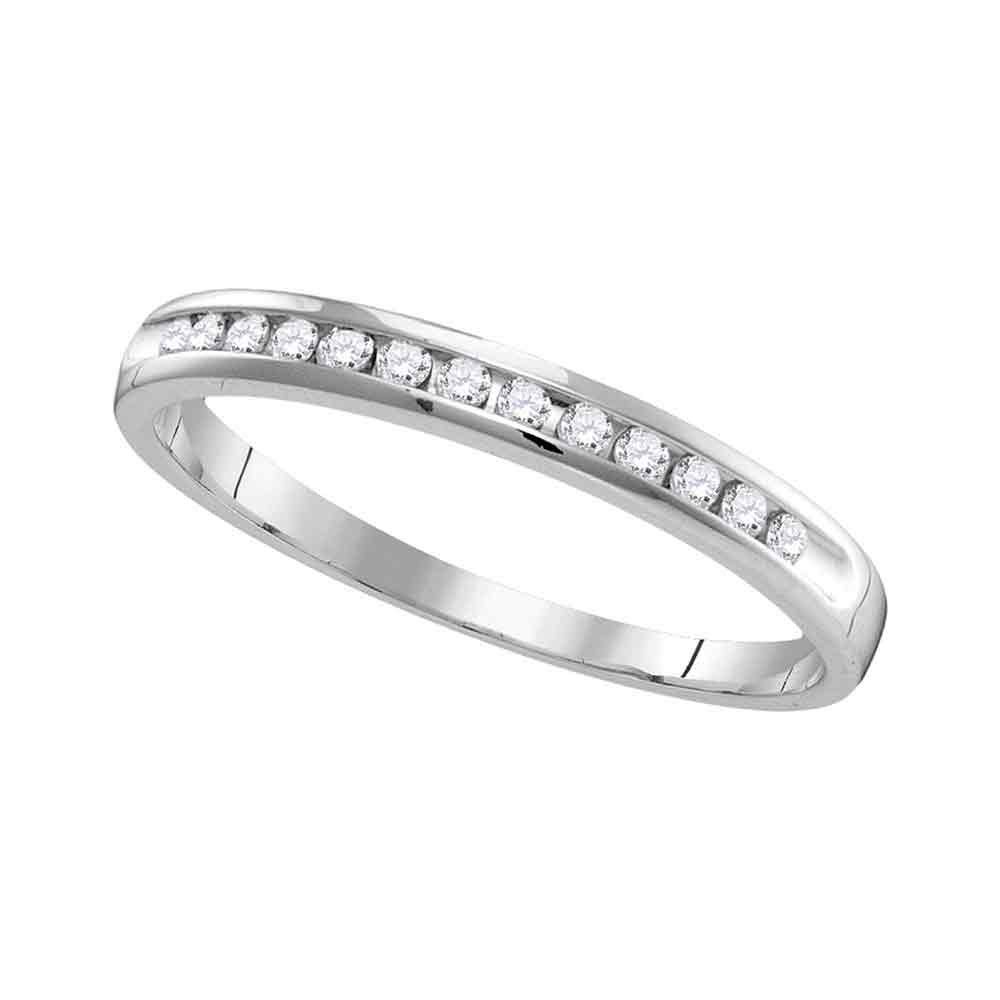 14kt White Gold Womens Round Diamond Slender Single Row Wedding Band 1/6 Cttw