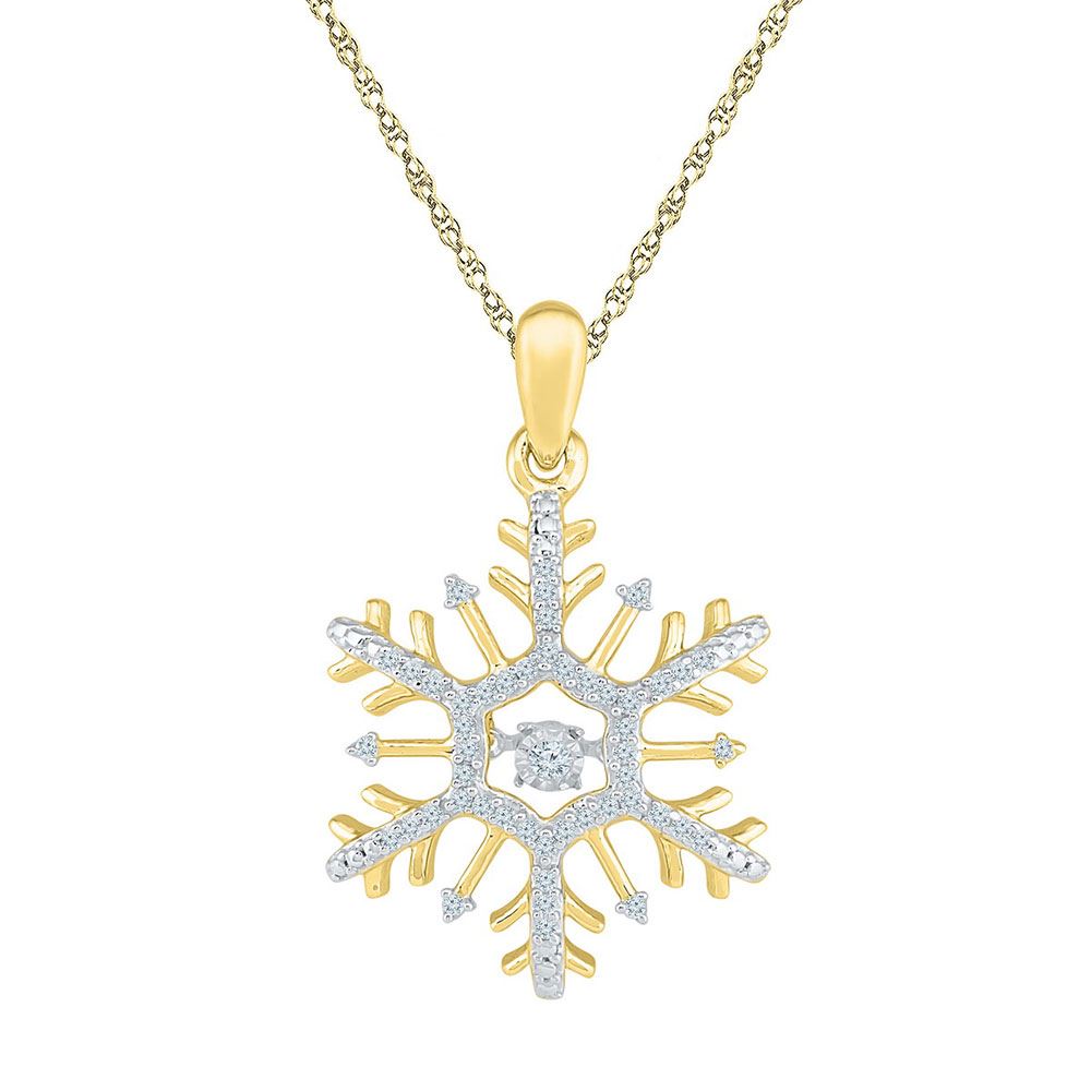 10kt Yellow Gold Womens Round Diamond Snowflake Winter Cluster Pendant 1/6 Cttw