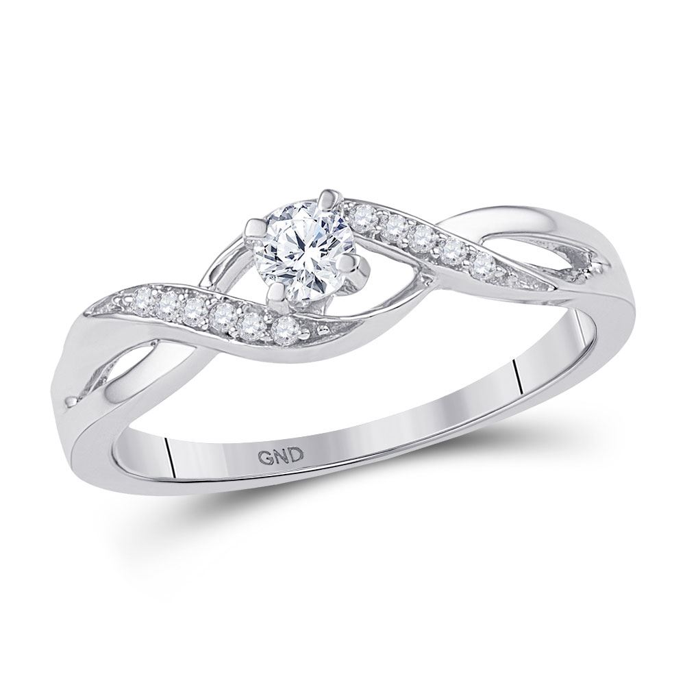 REF-19W2F ---- 1/6 CTW Round Diamond Solitaire Crossover Twist Promise Bridal Ring 10kt White Gold