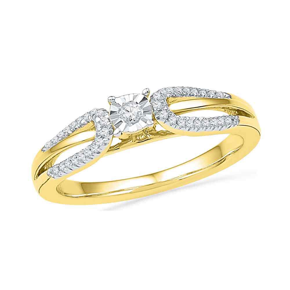 REF-25X3T - 1/6 CTW Round Diamond Solitaire Open-shank Bridal Wedding Engagement Ring 10kt Yellow Gold - REF-25X3T
