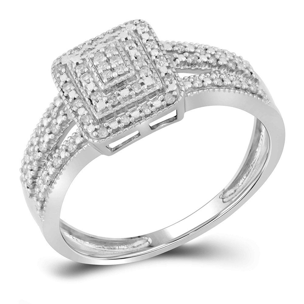 10kt White Gold Womens Round Diamond Square Cluster Bridal Wedding Engagement Ring 1/6 Cttw