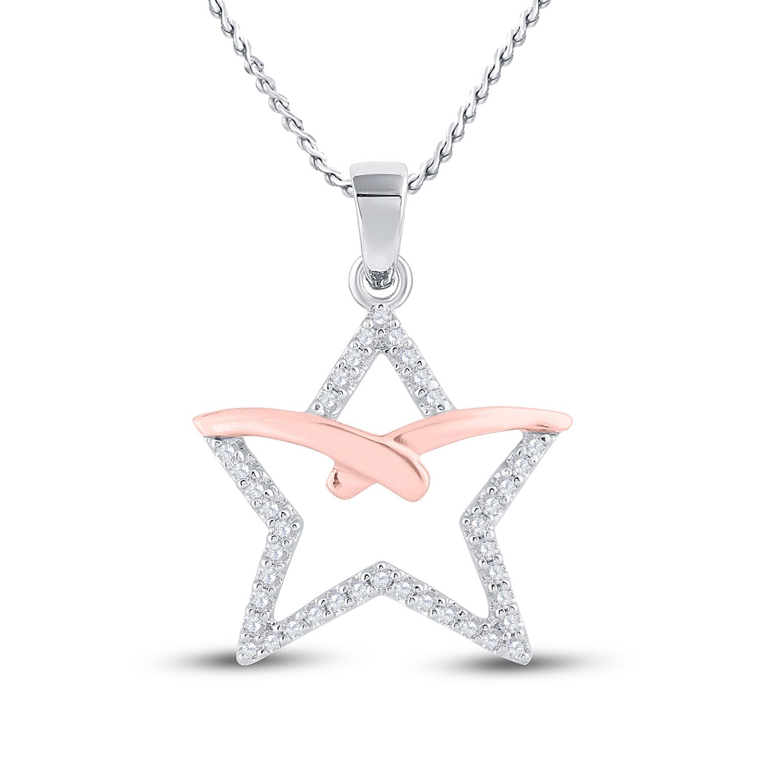 10kt White Rose-tone Gold Womens Round Diamond Star Outline Pendant 1/6 Cttw