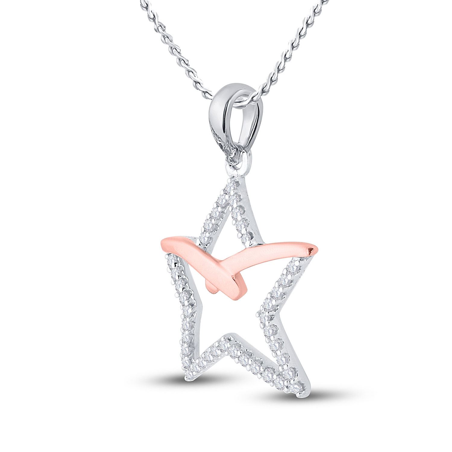 10kt White Rose-tone Gold Womens Round Diamond Star Outline Pendant 1/6 Cttw