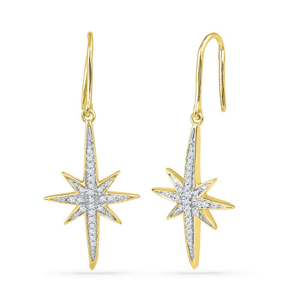 10kt Yellow Gold Womens Round Diamond Starburst Dangle Earrings 1/6 Cttw