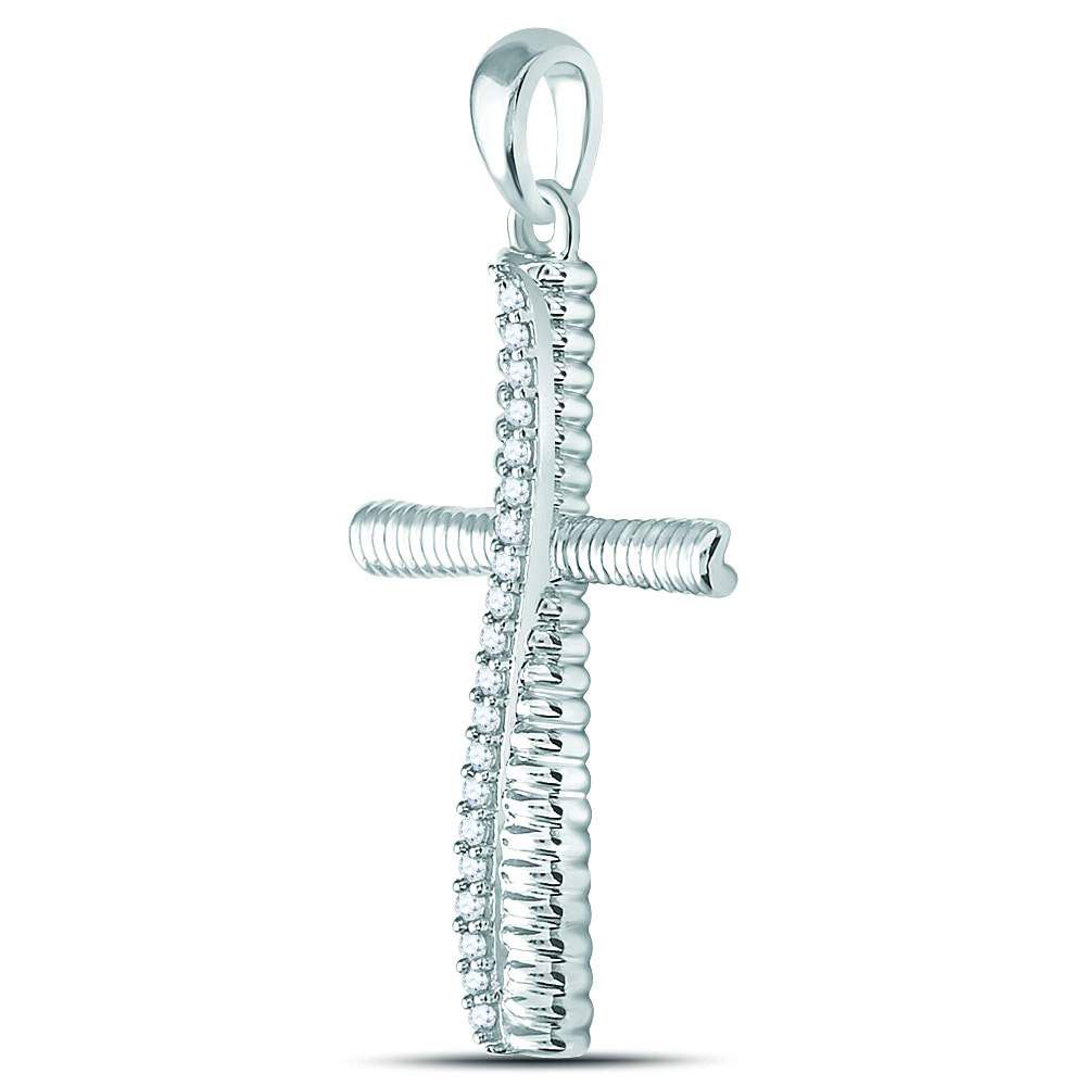 10kt White Gold Womens Round Diamond Textured Cross Faith Pendant 1/6 Cttw