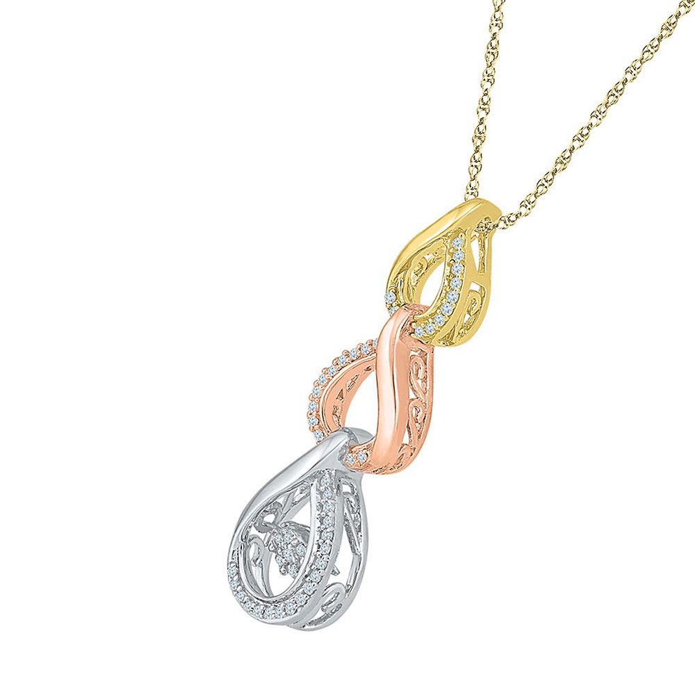 10kt Tri-Tone Gold Womens Round Diamond Triple Teardrop Moving Twinkle Pendant 1/6 Cttw