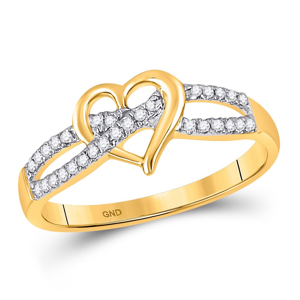 10kt Yellow Gold Womens Round Diamond Woven Heart Ring 1/6 Cttw