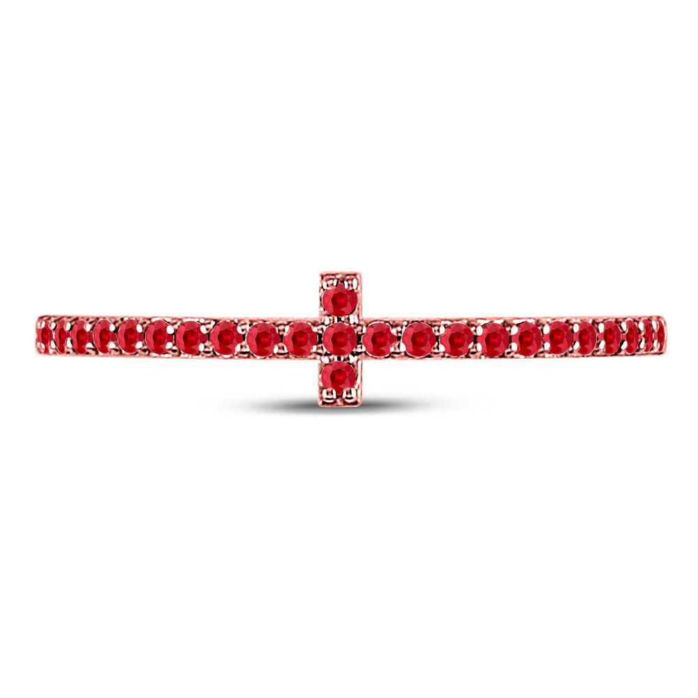 REF-10A8N ---- 1/6 CTW Round Ruby Cross Stackable Ring 10kt Rose Gold