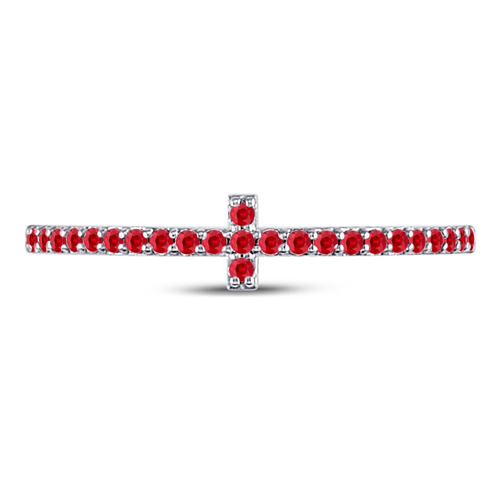 10kt White Gold Womens Round Ruby Cross Stackable Band Ring 1/6 Cttw