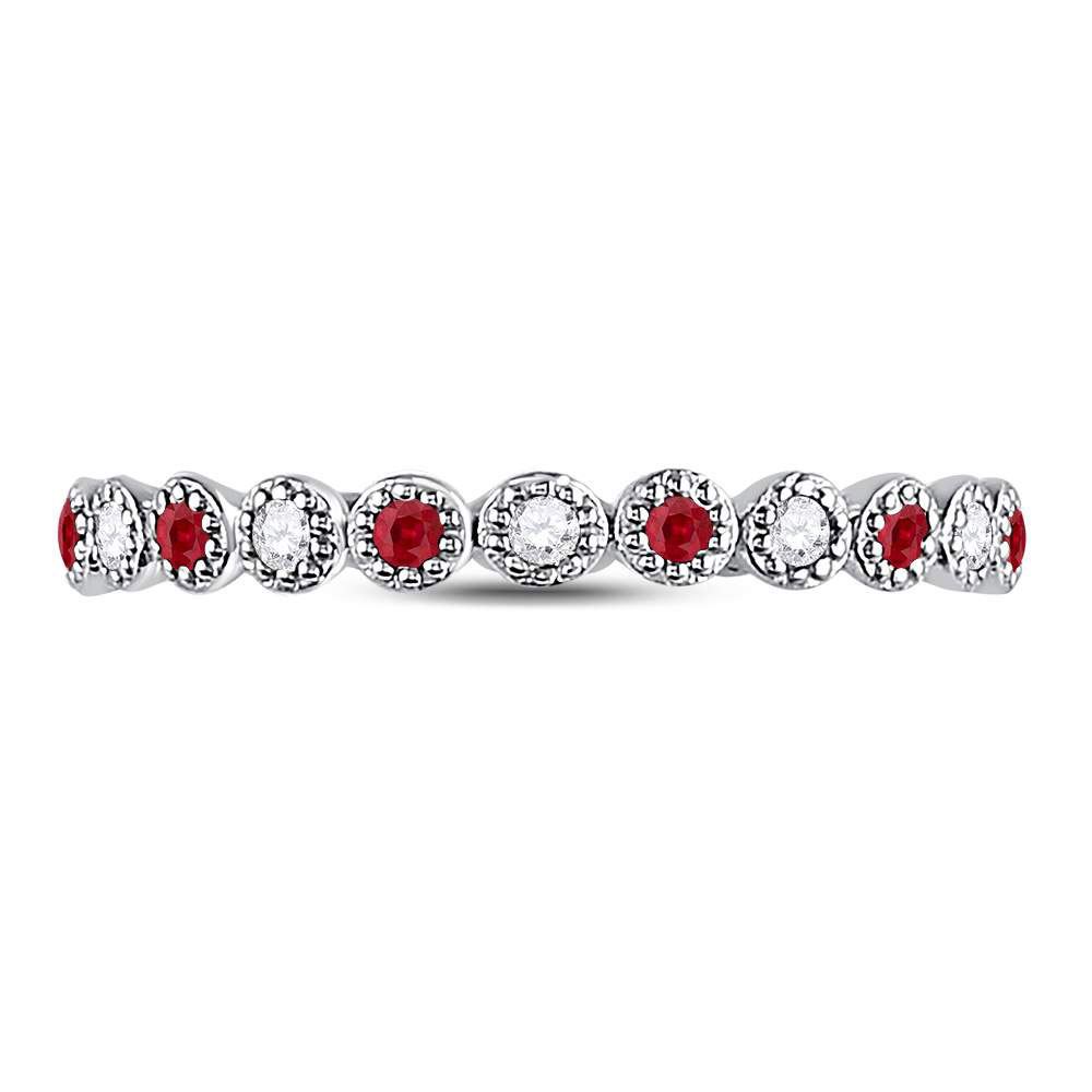 10kt White Gold Womens Round Ruby Diamond Beaded Dot Stackable Band Ring 1/6 Cttw