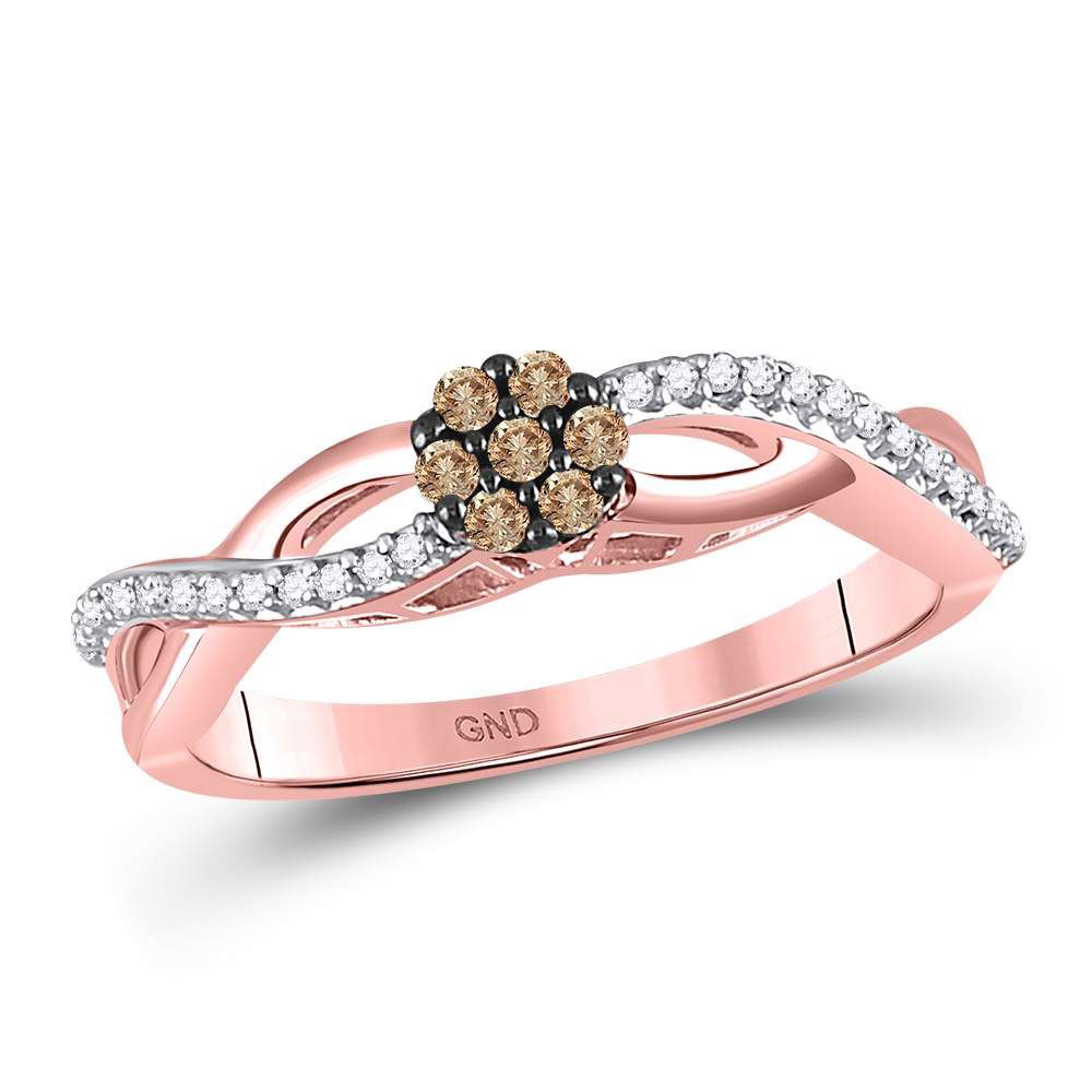REF-16Y4N - 1/6 CTW Womens Round Brown Diamond Cluster Twist Ring 10kt Rose Gold - REF-16Y4N