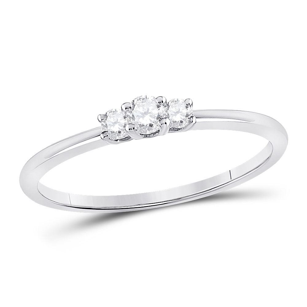 REF-20Y5N - 1/6 CTW Womens Round Diamond 3-Stone Stackable Band Ring 10kt White Gold - REF-20Y5N
