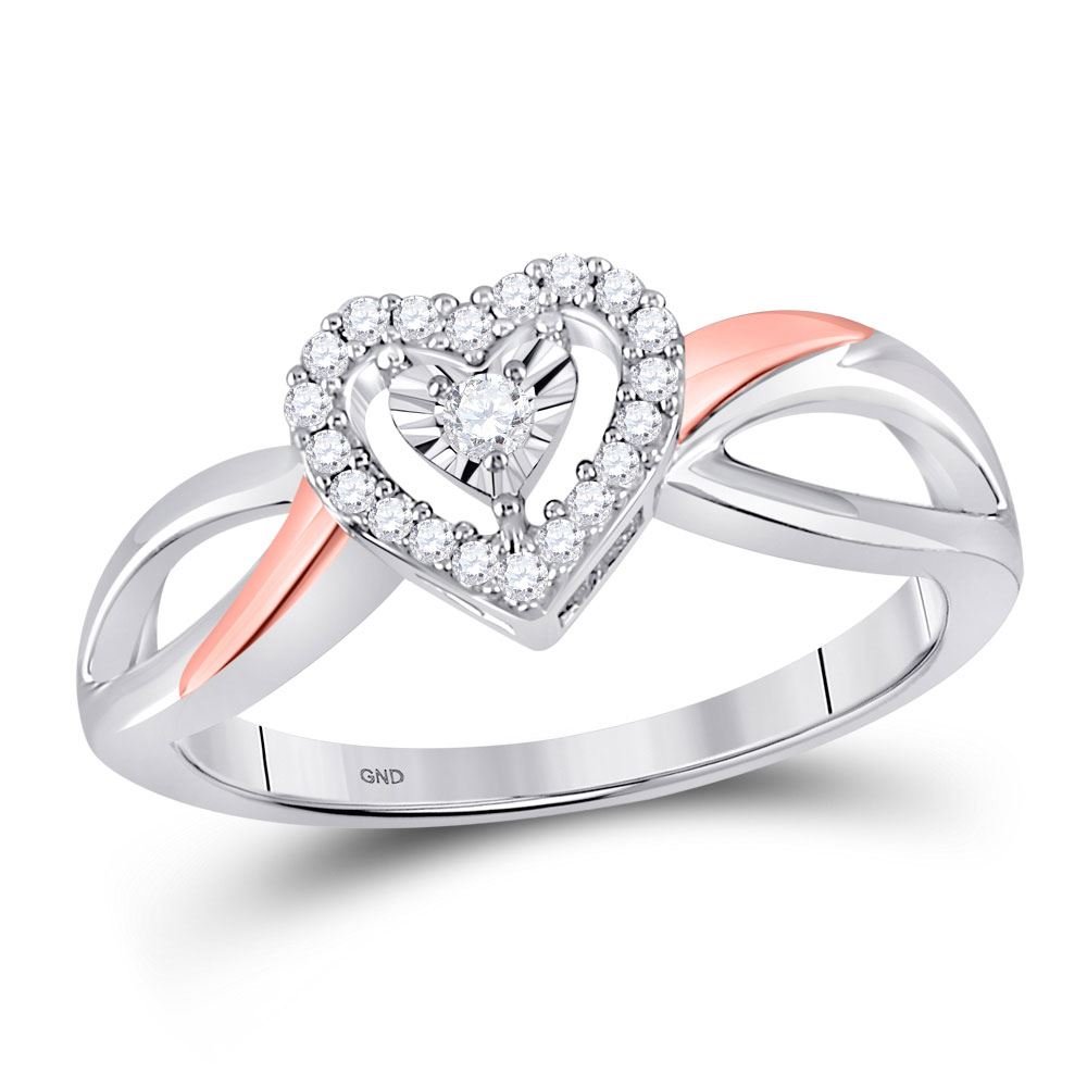 REF-18H5R - 1/6 CTW Womens Round Diamond Heart Ring 10kt Two-tone Gold - REF-18H5R
