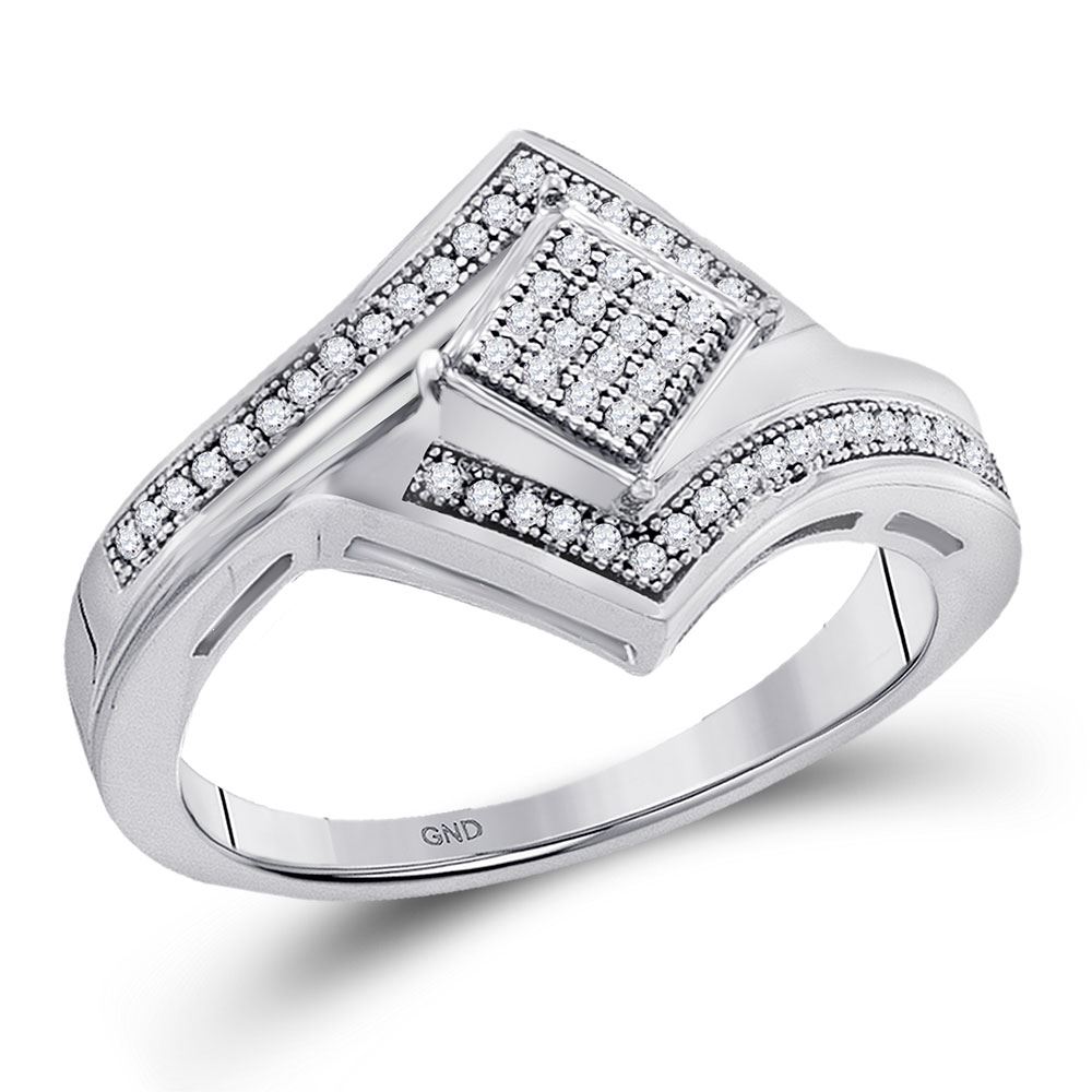 REF-20W5H - 1/6 CTW Womens Round Diamond Offset Square Cluster Ring 10kt White Gold - REF-20W5H