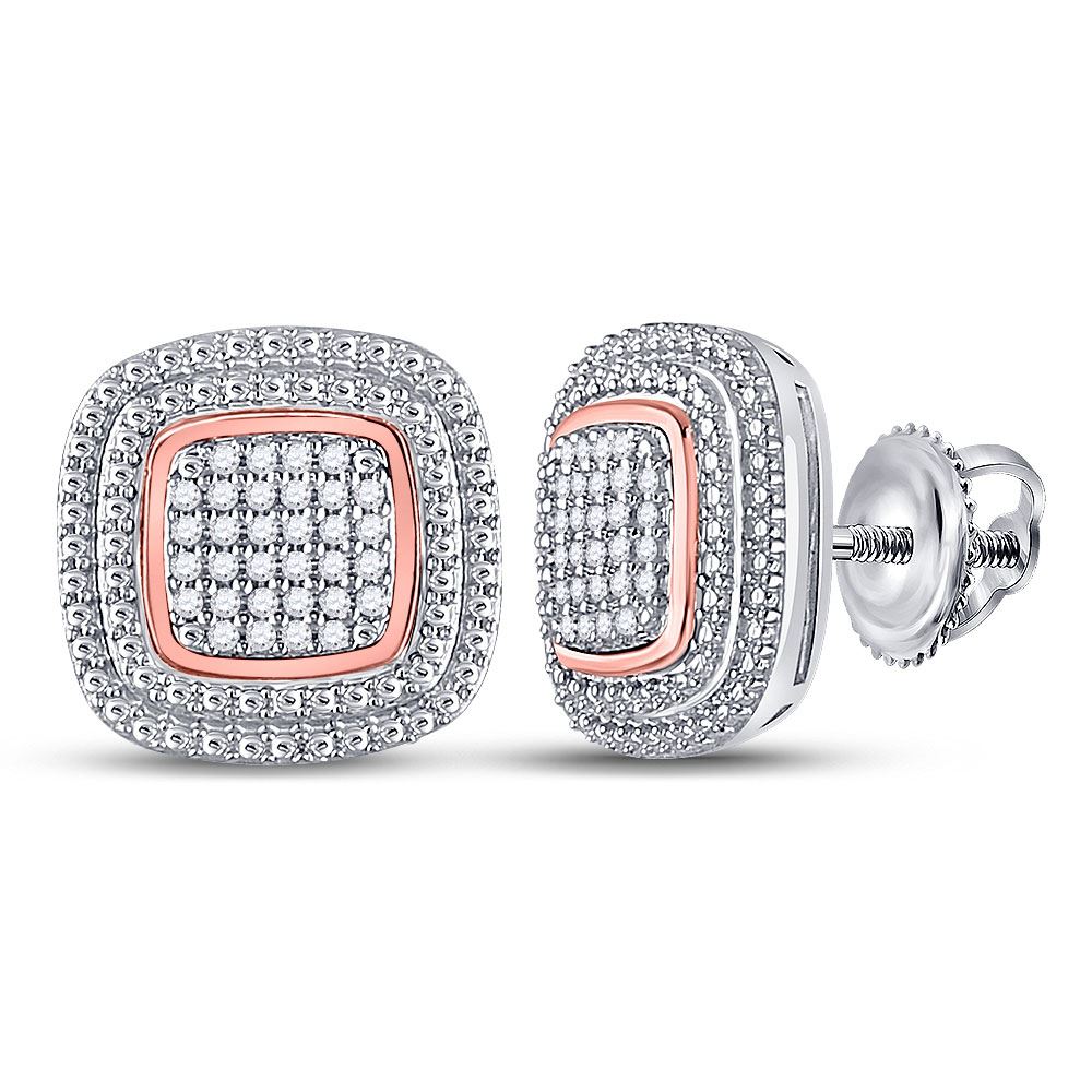 REF-34A3M - 1/6 CTW Womens Round Diamond Square Cluster Earrings 10kt Two-tone Gold - REF-34A3M