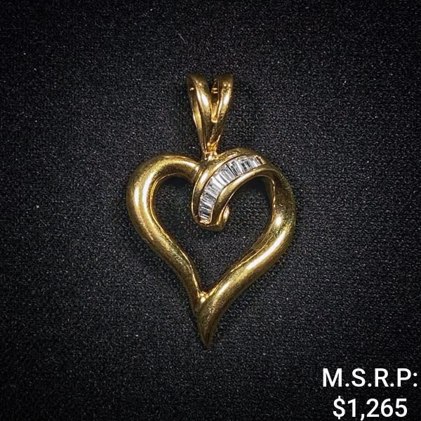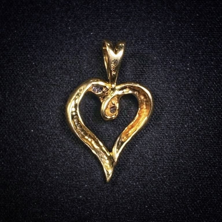 1.6 DWT 14 KT Gold Heart Pendant w/ Dimd Lining