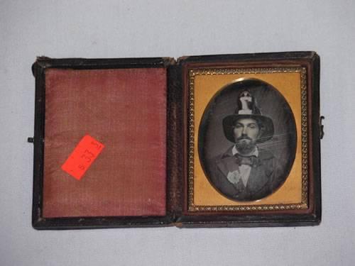 1/6 PLATE DAGUERREOTYPE OF BUST OF FIREMAN W/ HELMET - WASH. #7 W/ CASE - H. KING 127 MAIN ST. WRITTEN IN CASE, MINOR SCRATCHES and LOSSES;