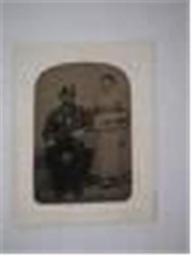 1/6 PLATE TIN TYPE OF FIREMAN IN PARADE UNIFORM W/ EARLY HELMET W/ LADY FRIEND - NO CASE;