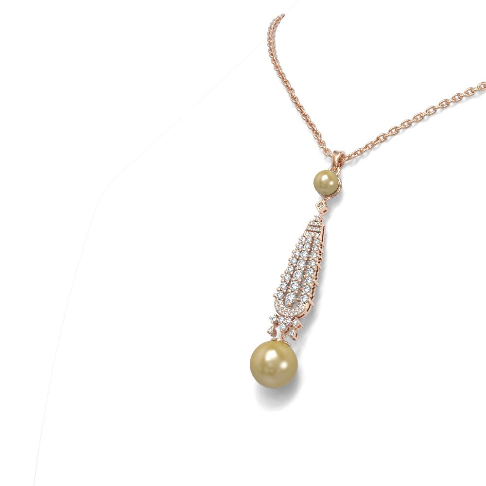 SKU: 55218 ---- 1.6 ctw Diamond & Pearl Necklace 18K Rose Gold