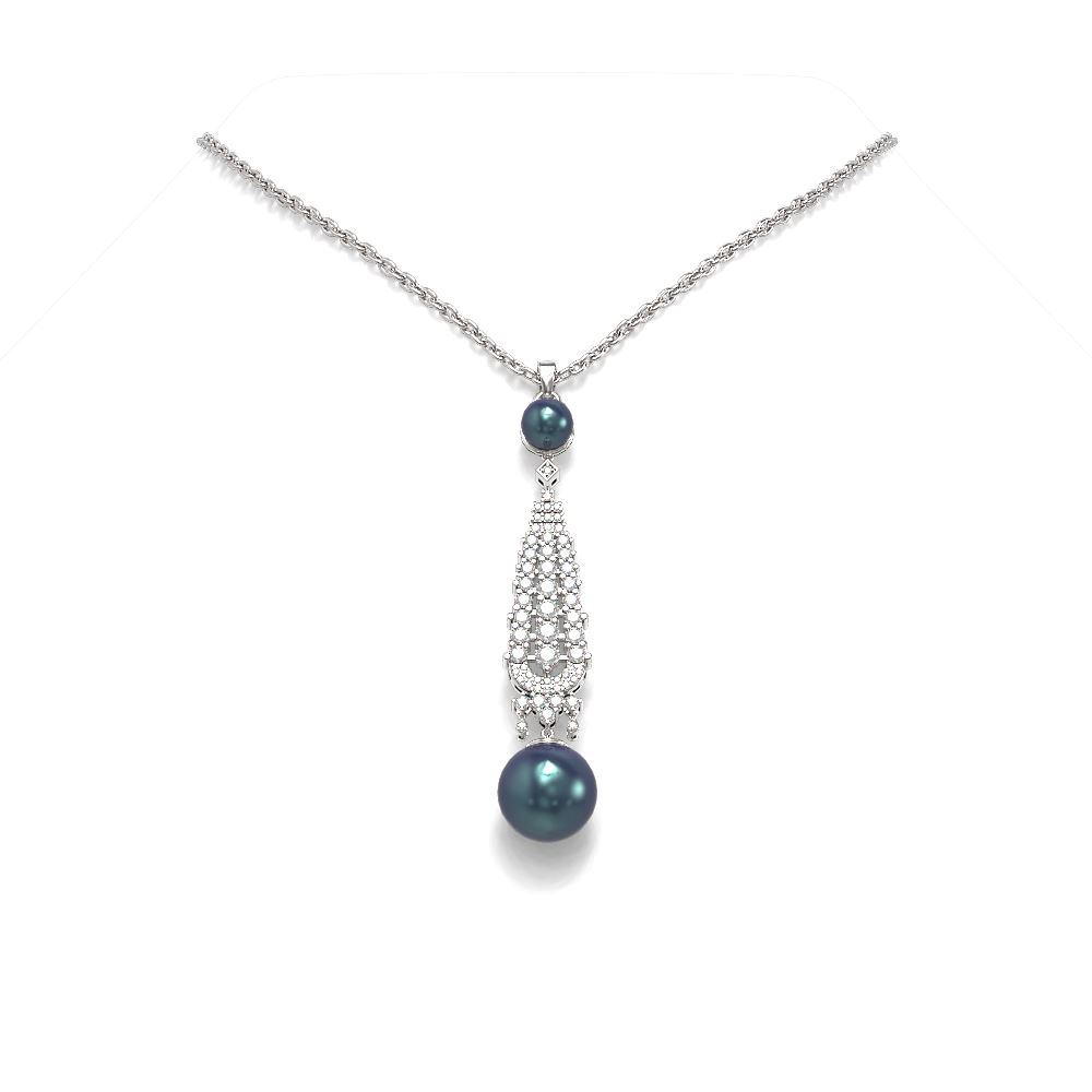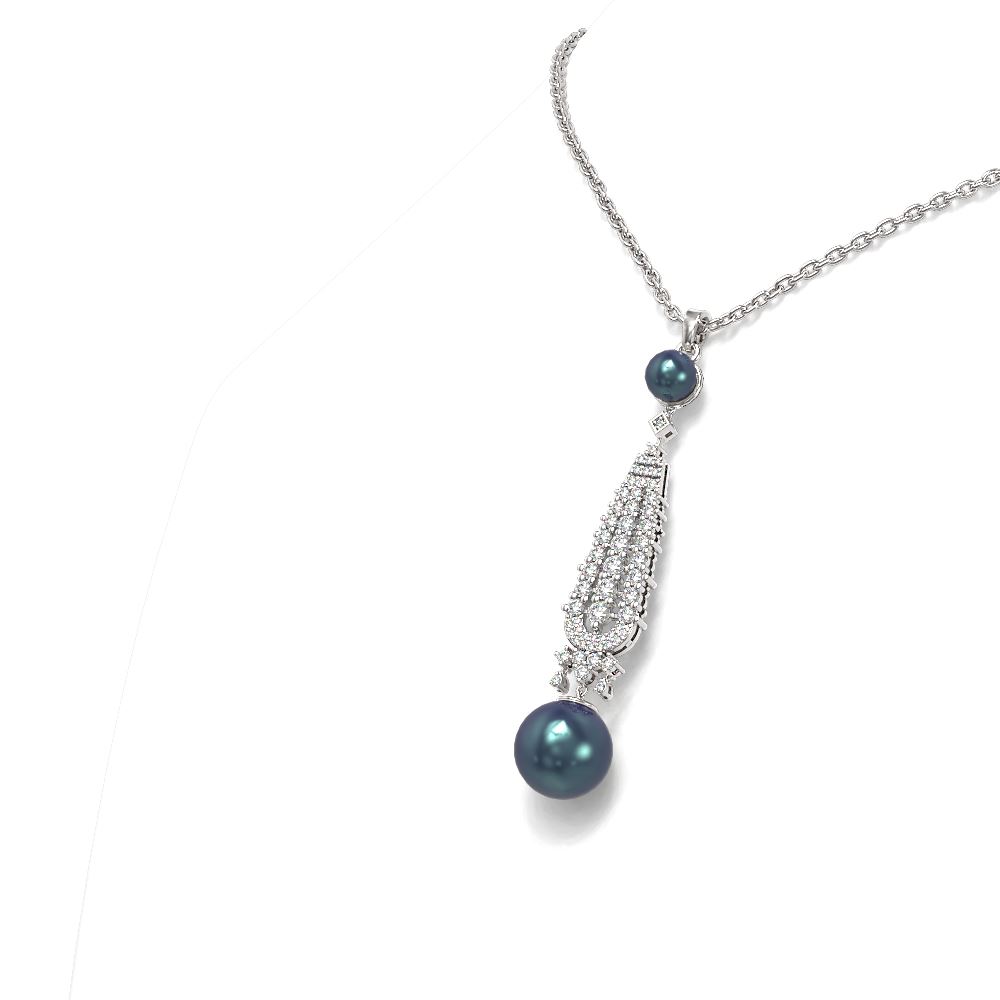 REF-160A2N - SKU: 55220 ---- 1.6 ctw Diamond & Pearl Necklace 18K White Gold