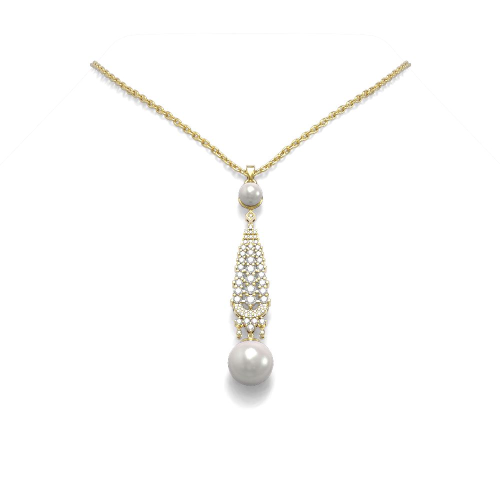 REF-160F2M - SKU: 55225 ---- 1.6 ctw Diamond & Pearl Necklace 18K Yellow Gold