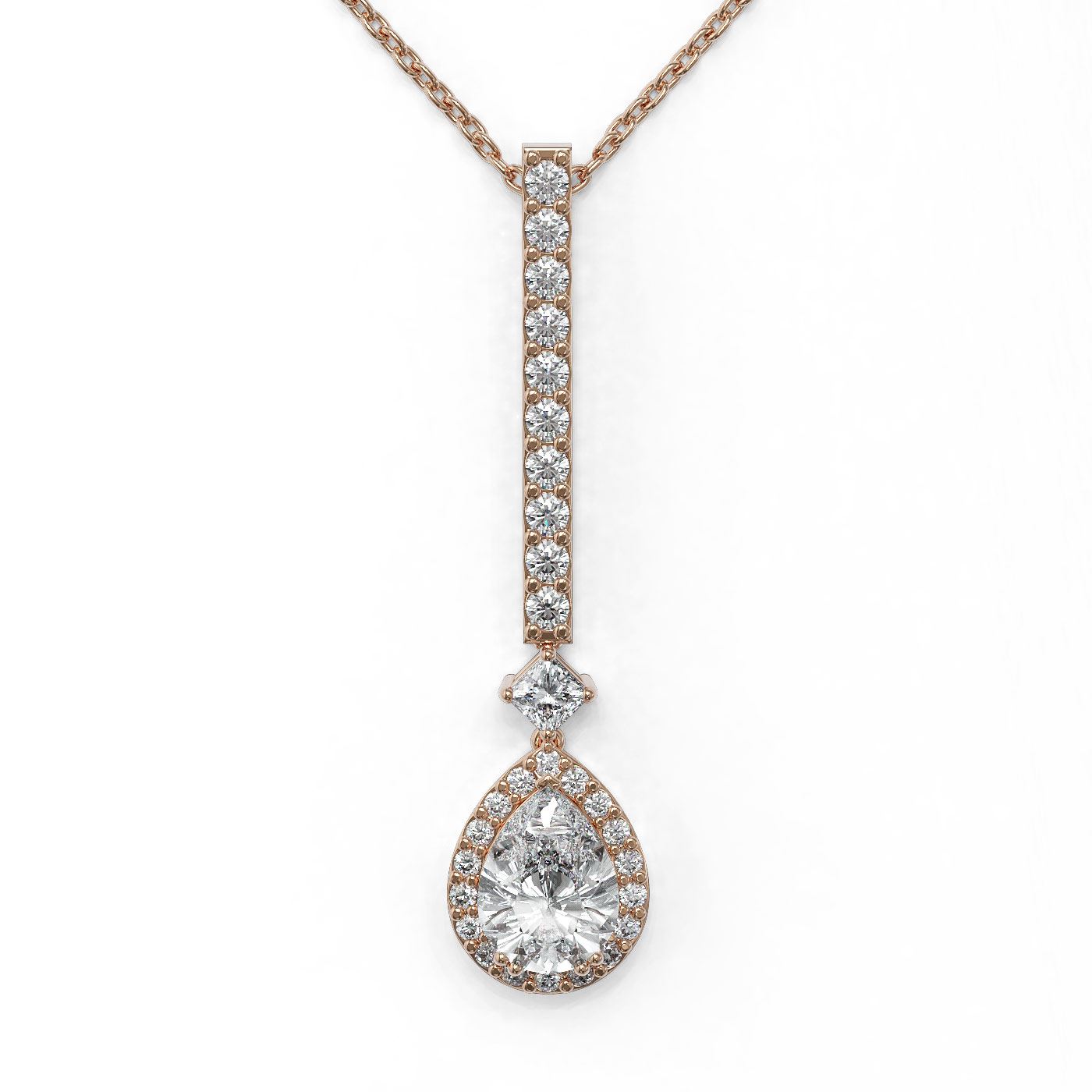 SKU: 49462 ---- 1.6 ctw Pear Cut Diamond Designer Necklace 18K Rose Gold