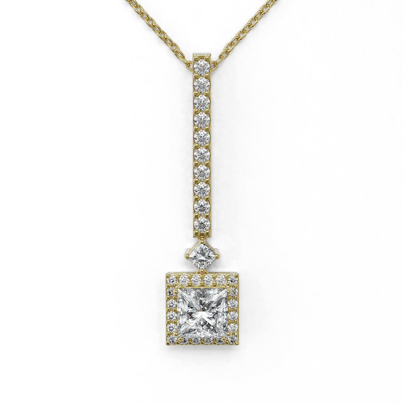 REF-320M2G - SKU: 49457 ---- 1.6 ctw Princess Cut Diamond Designer Necklace 18K Yellow Gold