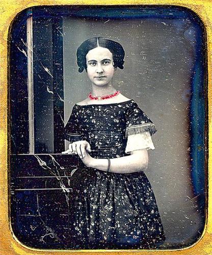 Very pleasing 1/6 plate daguerreotype in elliptical mat, early seals present but loose. In a fine example of the "Beehive, farm motif-2" case (Berg 1 - 91.) Image and case are [4-]