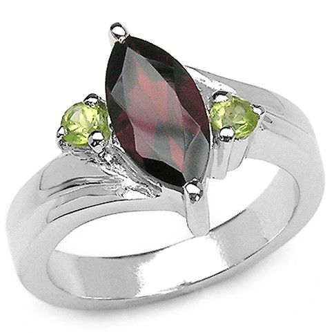 1.60 CARAT GENUINE GARNET & PERIDOT .925 STERLING SILVER RING - METAL INFORMATION: .925 STERLING SILVER FINISH: HIGH SILVER POLISH ITEM: RING TOTAL CTW: 1.60CTW WEIGHT: 5.90GMS STONE INFORMATION: GARNET QUANTITY: 1 SHAPE / SIZE: MARQUISE/12X16MM PERIDOT QUANTITY: 2 SHAPE / SIZE: ROUND/3.00MM