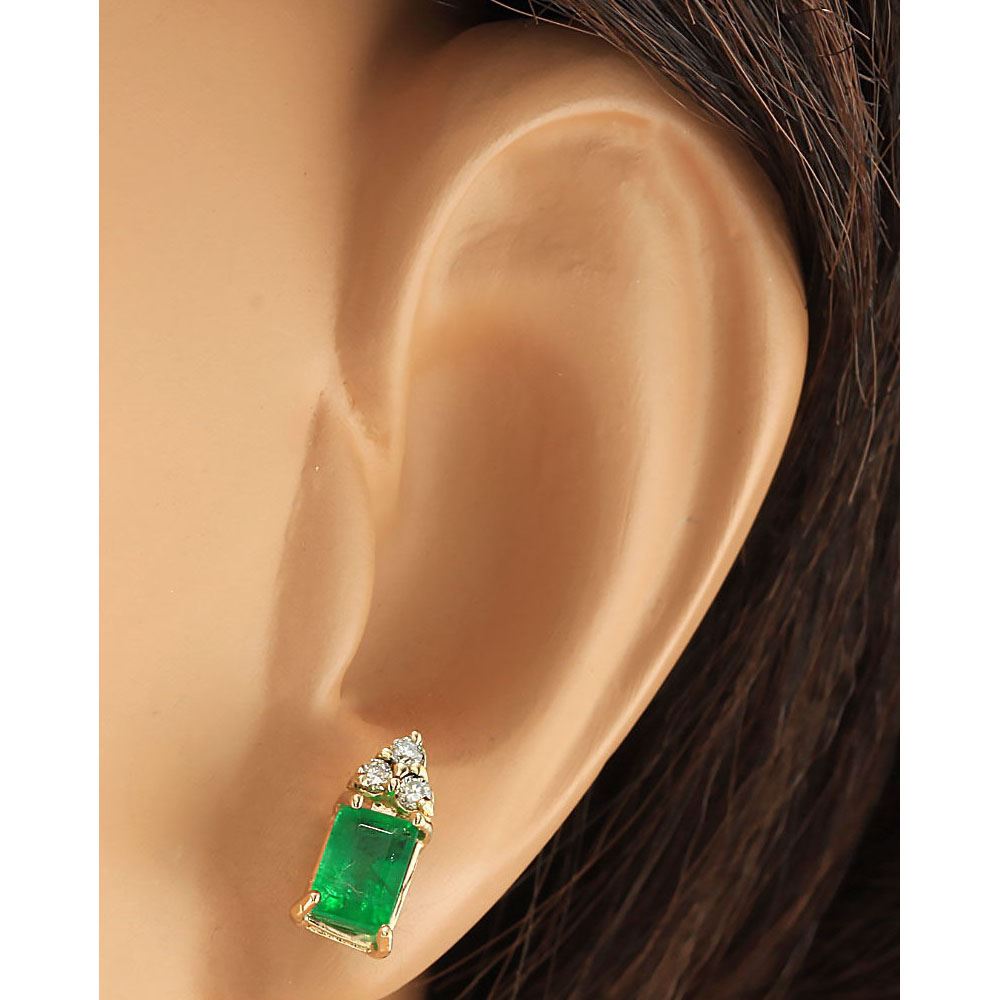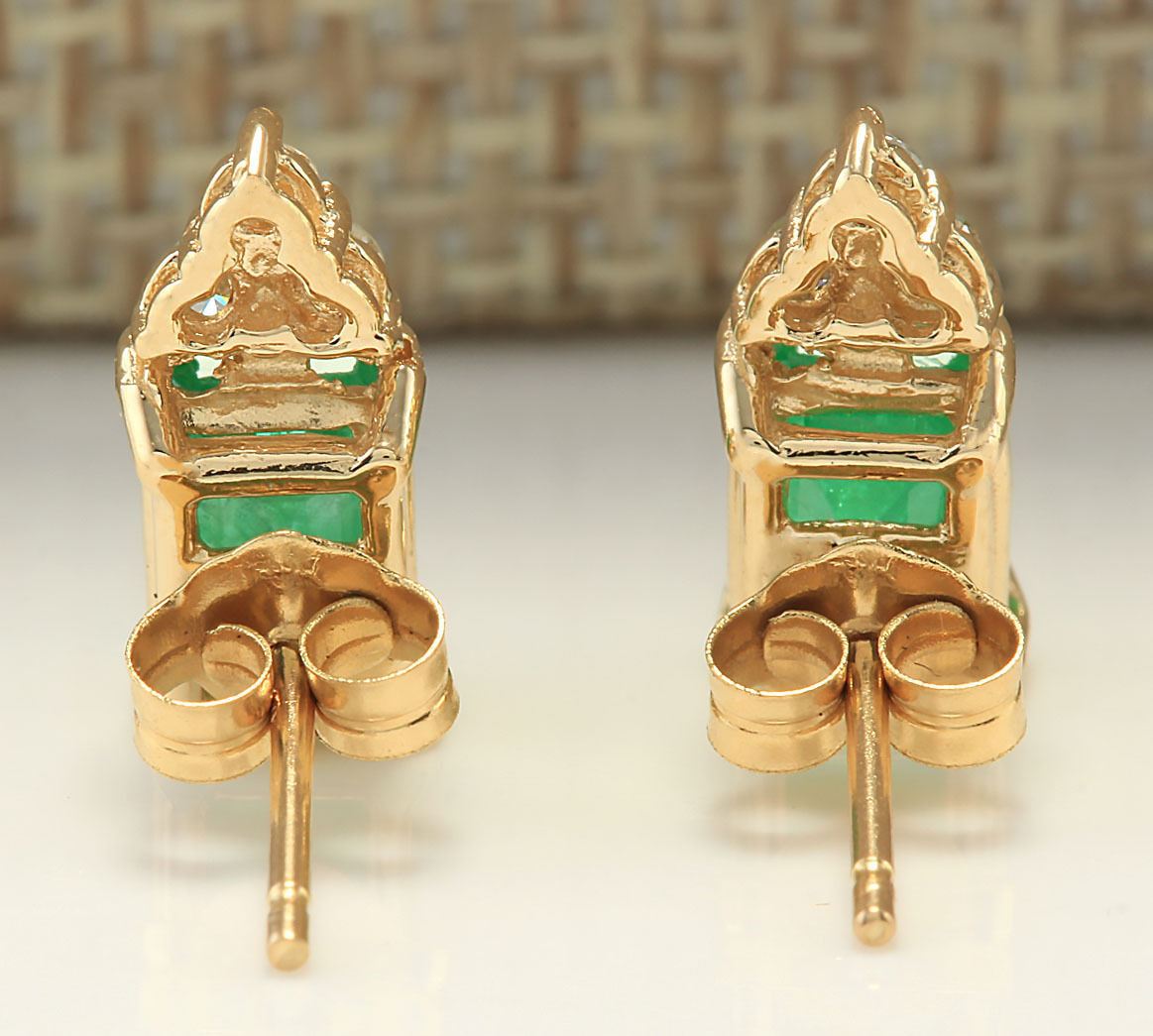 1.60 CTW Natural Emerald And Diamond Earrings 14k Solid Yellow Gold