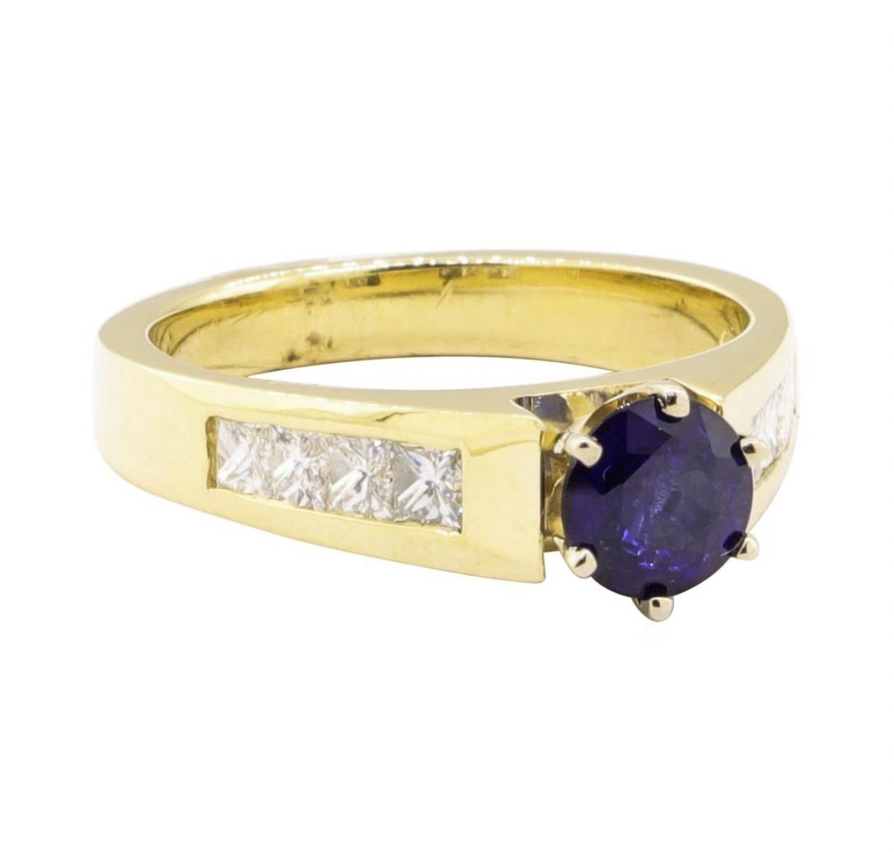 One ring featuring: 14KT yellow gold weighing 5.2 grams containing one blue sapphire weighing 0.90 ct and diamonds weighing 0.70 ctw.