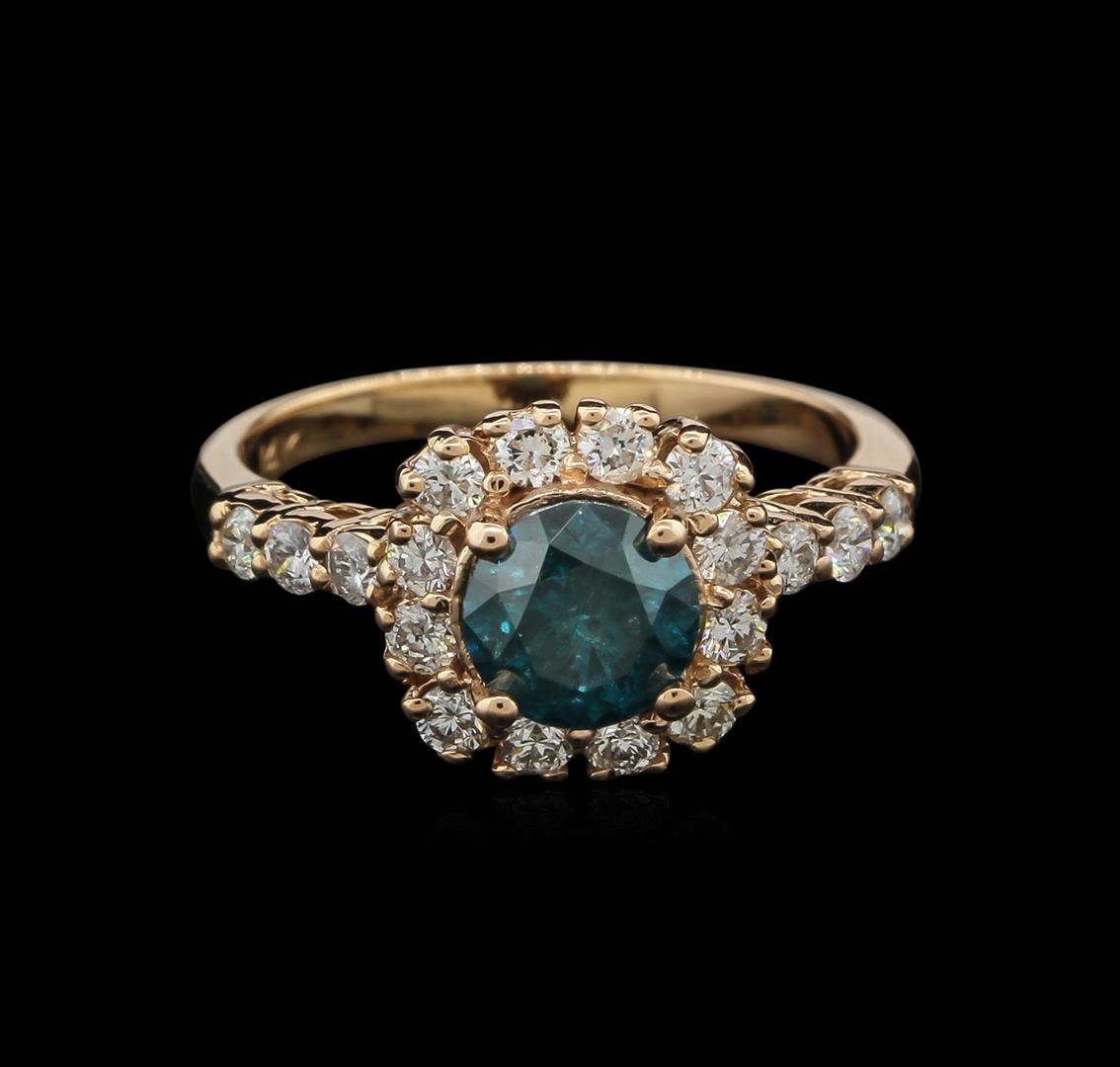 One electronically tested 14KT rose gold lady's cast halo ring with a basket setting with a bright polish finish. The featured ladies halo ring has a 2.00mm shank. Identified with markings of "14K". Condition is new, good workmanship. Containing: One prong set round brilliant cut diamond, measuring 6.25 - 6.22 x 4.13mm (depth est.) approximate weight of 1.05ct. Indications of laboratory high temperature heat treatment. Colored gemstones are presumed to have been subjected to commonly used enhancement processes. Graded in the setting. Clarity: I-2 Cut Good Eighteen prong set round brilliant cut diamonds, measuring 2.00 - 1.95 x 1.29mm (depth est.) approximate. Total Weight of 18 Stones = 0.55ct. Graded in the setting. Clarity: SI-1 to SI-2. Color: H - Good. Total Weight of Diamonds 1.60ct. Total Weight of Ring 3.00gm. GAS Appraised at $4,750.00.