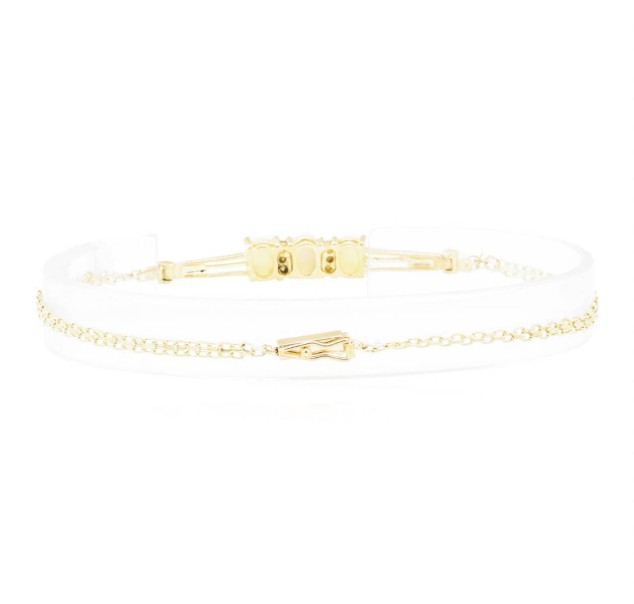 One bracelet measuring approximately seven and a half inches in length featuring: 14KT yellow gold weighing 3.5 grams containing three opals weighing 1.50ctw and diamonds weighing 0.10ctw.