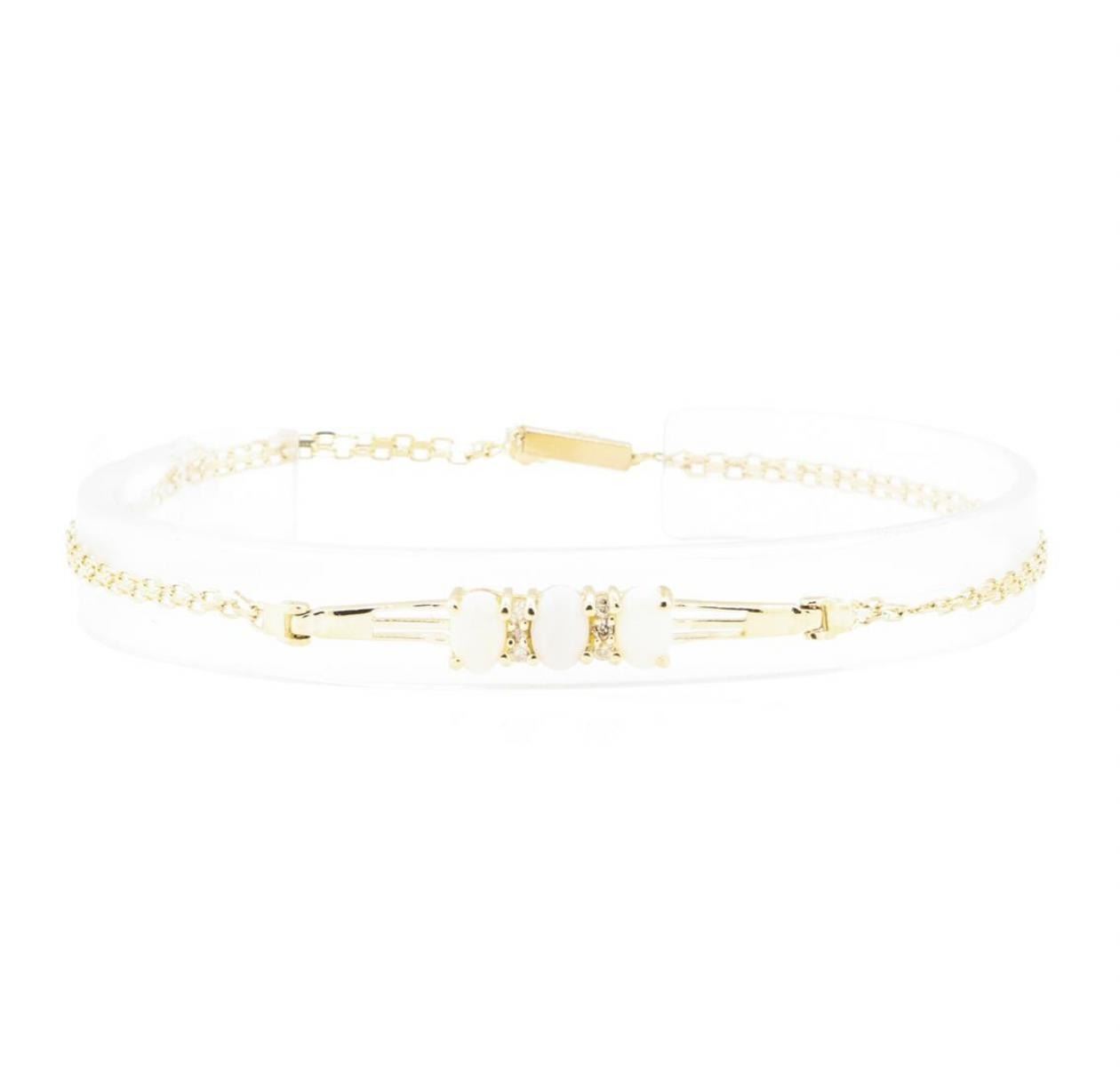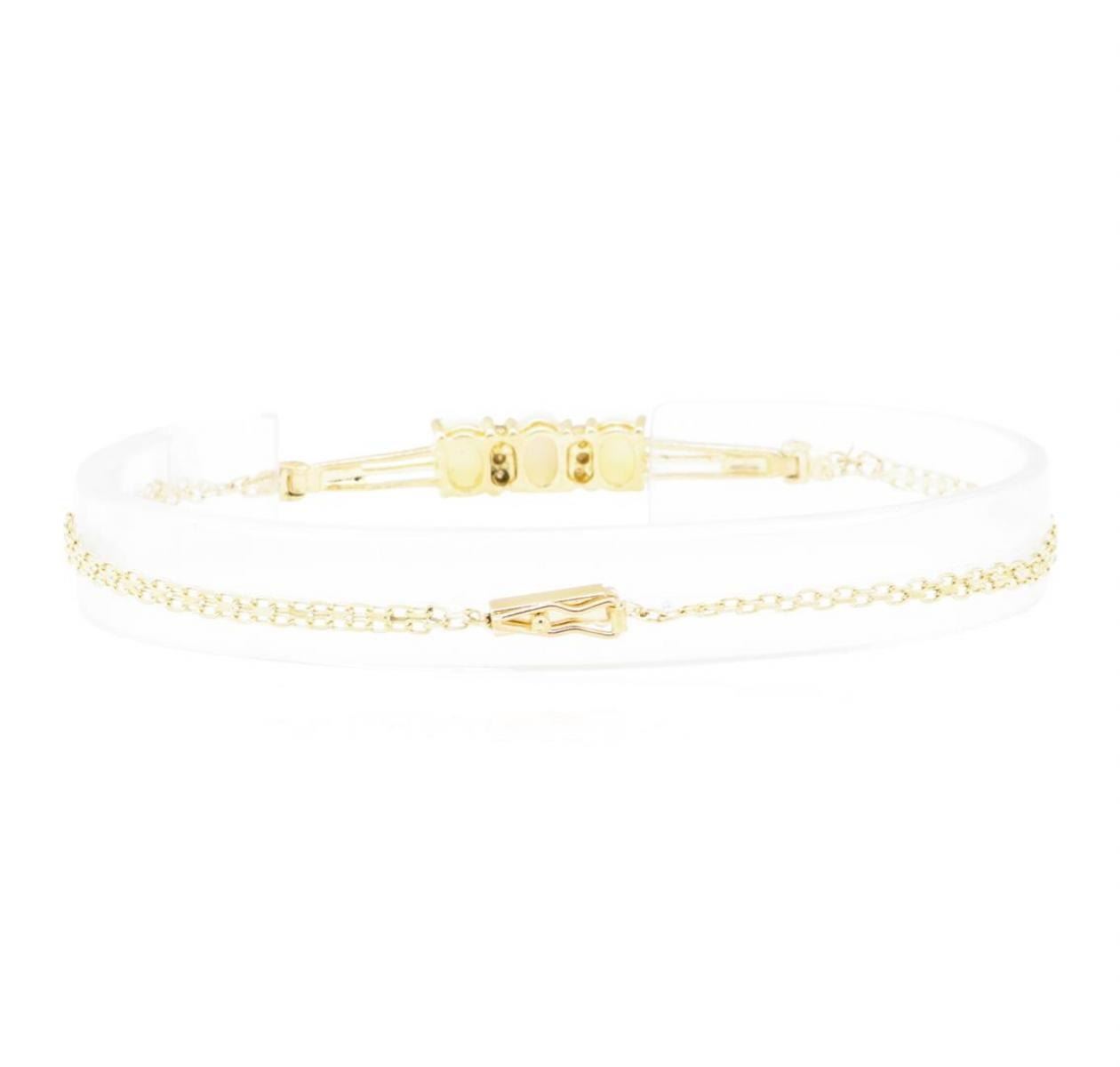 One bracelet measuring approximately seven and a half inches in length featuring: 14KT yellow gold weighing 3.5 grams containing three opals weighing 1.50 ctw and diamonds weighing 0.10 ctw.