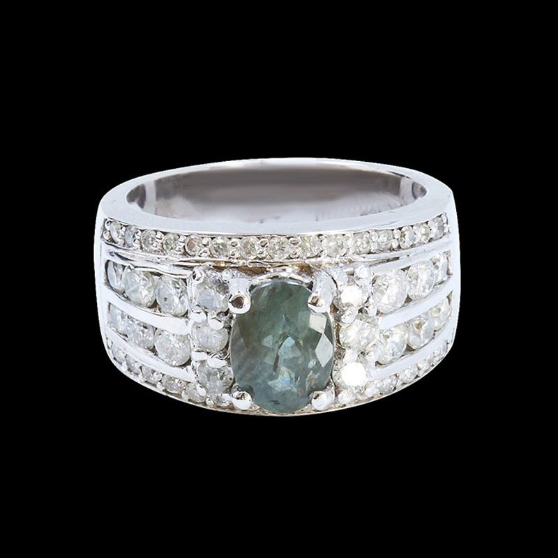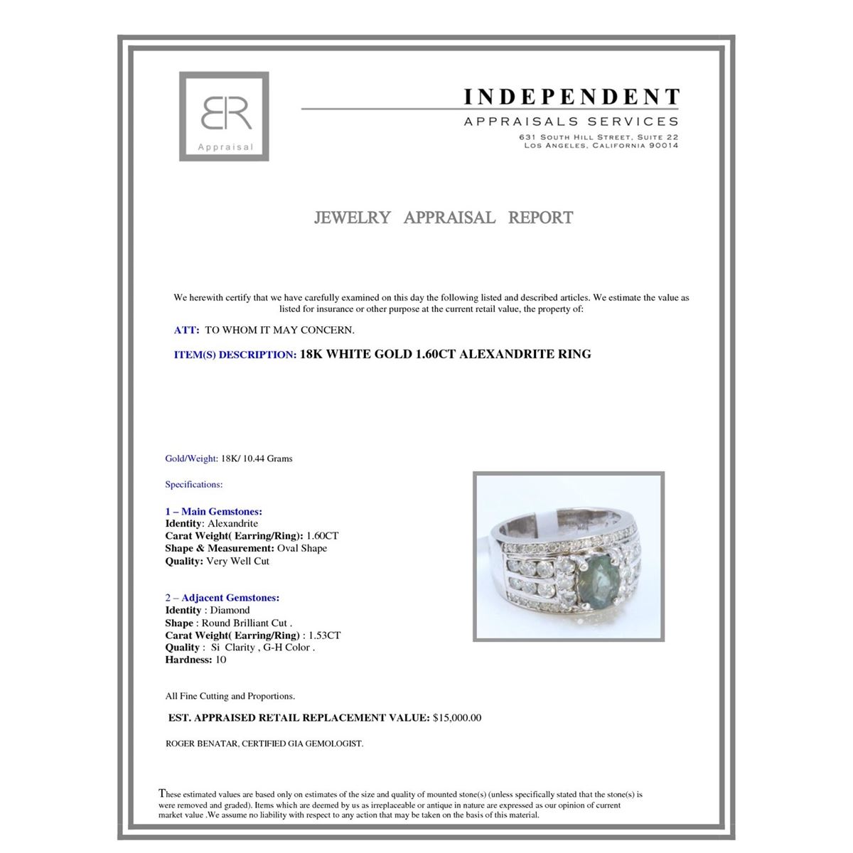 18K WHITE GOLD NATURAL ALEXANDRITE VERY GOOD COLOR CHANGE RING:10.44GRAMS/DIAMOND:1.53CT/ALEXANDRITE:1.60CT/#GVR1033